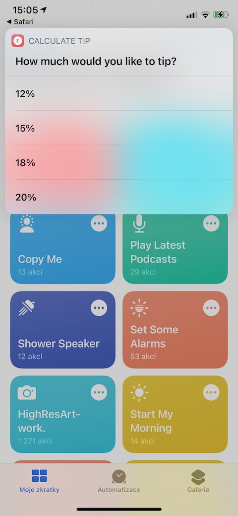 S pomocí zkratky s názvem Calculate Tip můžete snadno a rychle vypočítat výši spropitného, potažmo vypočítat procento s vámi zadané částky. Zkratka ve výchozím nastavení pracuje s určenými procenty, které si ale můžete přizpůsobit, stejně jako to, v jaké měně bude výsledek udáván. Pro přizpůsobení zkratky spusťte na svém iPhonu nativní Zkratky, vlevo dole klepněte na Moje zkratky a poté v pravém horním rohu karty se zkratkou klepněte na tři tečky. Poté můžete měnit a přidávat další položky.