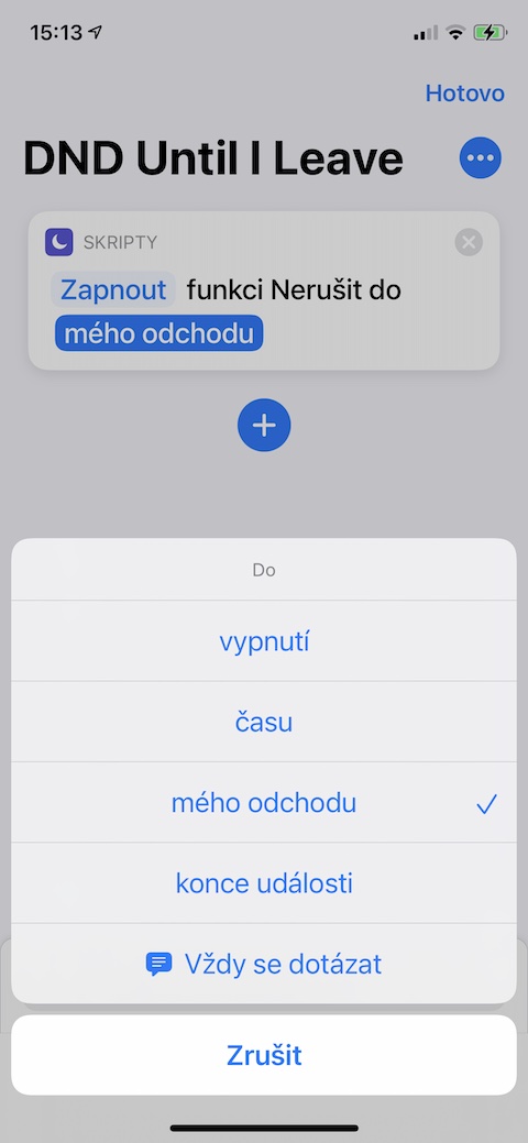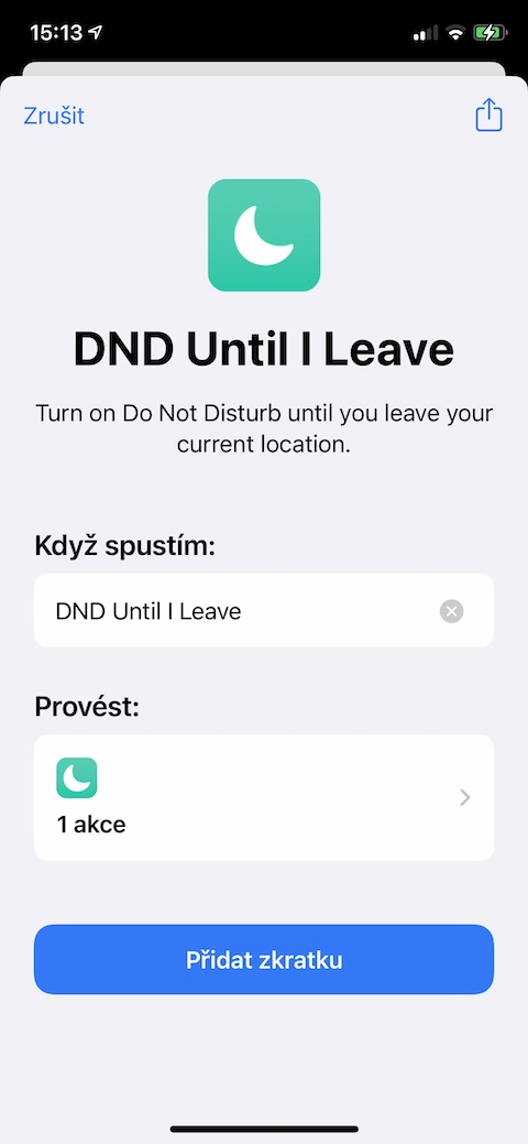 Zkratka s názvem DND Until I Leave vám umožní na vašem iPhonu nastavit režim Nerušit na základě vámi zadaných požadavků s tím, že dojde k jeho automatické deaktivaci. Zkratku můžete použít například tehdy, když jste na nějaké schůzce, u lékaře, ve škole nebo třeba v práci – DND Until I Leave pracuje s vaší aktuální polohou, a poté, co lokaci opustíte, dojde automaticky k deaktivaci režimu Nerušit – vy už se tím pádem nemusíte sami vůbec o nic starat.