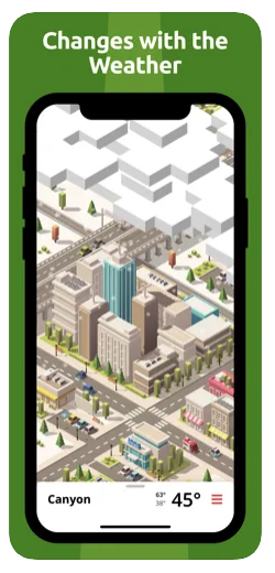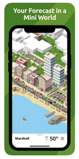 Titul vám poskytne skutečně unikátní pohled na stále se měnící počasí. To totiž můžete pozorovat prostřednictvím přítomného mini světa. Jak se tedy mění povětrnostní podmínky v našem skutečném světě, mění se i ty v tom virtuálním a to po 24 hodin denně 7 dní v týdnu. Zobrazovaná data pak pocházejí z přesného Dark Sky, přítomny jsou i upozornění a výstrahy.