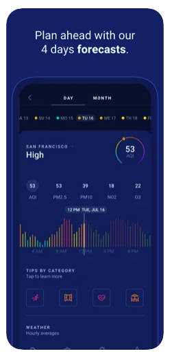 Tato aplikace informuje především o znečištění ovzduší nejen kolem vás, ale i po celém světě. Nabízí přehled úrovně znečištění v reálném čase a jejich vývoj na příštích 72 hodin. Veškeré hodnoty se vypočítávají podle systému využívajícího širokou škálu zdrojů dat, jako jsou satelitní snímky, atmosférické simulace, datové sady provozu a vypouštěných emisí atd.