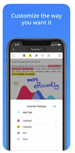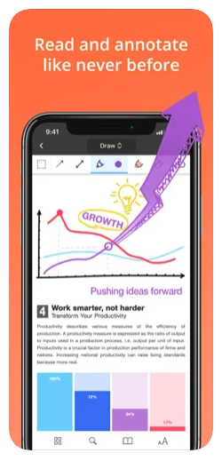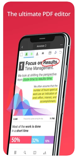 Aplikace přenáší možnosti editace souborů PDF z počítače na váš iPhone nebo iPad. Zvýrazňuje ve vybrané barvě, přeřazuje stránky, poskytuje anotace, ale také samotnou editaci přítomného textu, a to především díky podpoře Apple Pencil (na podporovaném iPadu). Přítomna je i galerie stovek samolepek, nebo funkce Text to Speech.