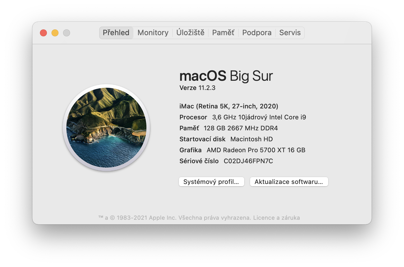 Sáhl jsem po tom nejlepším, co dnes Apple nabízí v oblasti iMaců a i když konfigurace stojí raketu, stále je to méně než v případě Macu Pro. Já navíc chci mít na stole dva displeje, což iMac spolu s XDR Pro Displejem od Applu splňuje stoprocentně. Konkrétně se tedy jedná o konfiguraci s desetijádrovým procesorem Intel Core i9 s 3,6 GHz, AMD Radeon Pro 5700 XT s 16 GB RAM a se 128 GB operační paměti DDR4 a 1TB flash uložištěm. K počítači je pak dále připojen Apple Pro Display XDR, který společně se samotným iMacem 5K tvoří plochu o rozlišení 6016×3384 pixelů + 5120×2880 pixelů. Jediné, co jsem do počítače doinstaloval dodatečně, je operační paměť, díky čemuž se mi podařilo při použití stejných pamětí, jaké vám dodá sám Apple, ušetřit přes šedesát tisíc korun. Více se o instalaci operační paměti do tohoto iMacu dozvíte v následujícím článku.