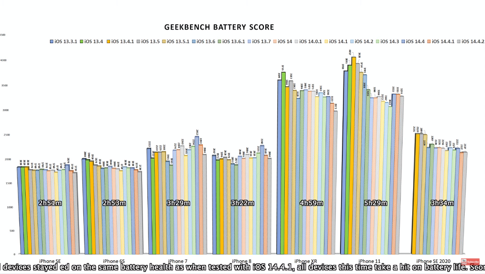 Koncem minulého pracovního týdne Apple nečekaně uvolnil další aktualizaci iOS 14. Byť jde jen o drobný update opravující některé chyby, i tak dokáží taková drobná zlepšení udělat s aspekty rychlosti a baterie pěknou paseku. Nebo naopak výše zmíněné zlepšit. Uživatelé si často stěžují na výdrž baterie, na což se zaměřil kanál iAppleBytes v testu umístěném pod tímto odstavcem, a to u iPhonů SE 1. generace, 6s, 7, 8, XR, 11 a SE 2.generace.