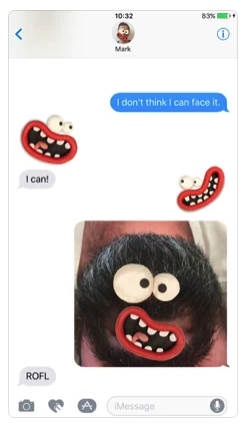 Procházejte miliony vtipných nálepek, anebo si vytvořte vlastní. To můžete činit z jakýchkoli svých fotografií. Díky funkci automatického ořezu to je skutečně snadné. Skvělé je, že zde můžete vytvářet celá vlastní alba, která pak jde sdílet se svými přáteli. Ti se tak mohou bavit i na váš účet.