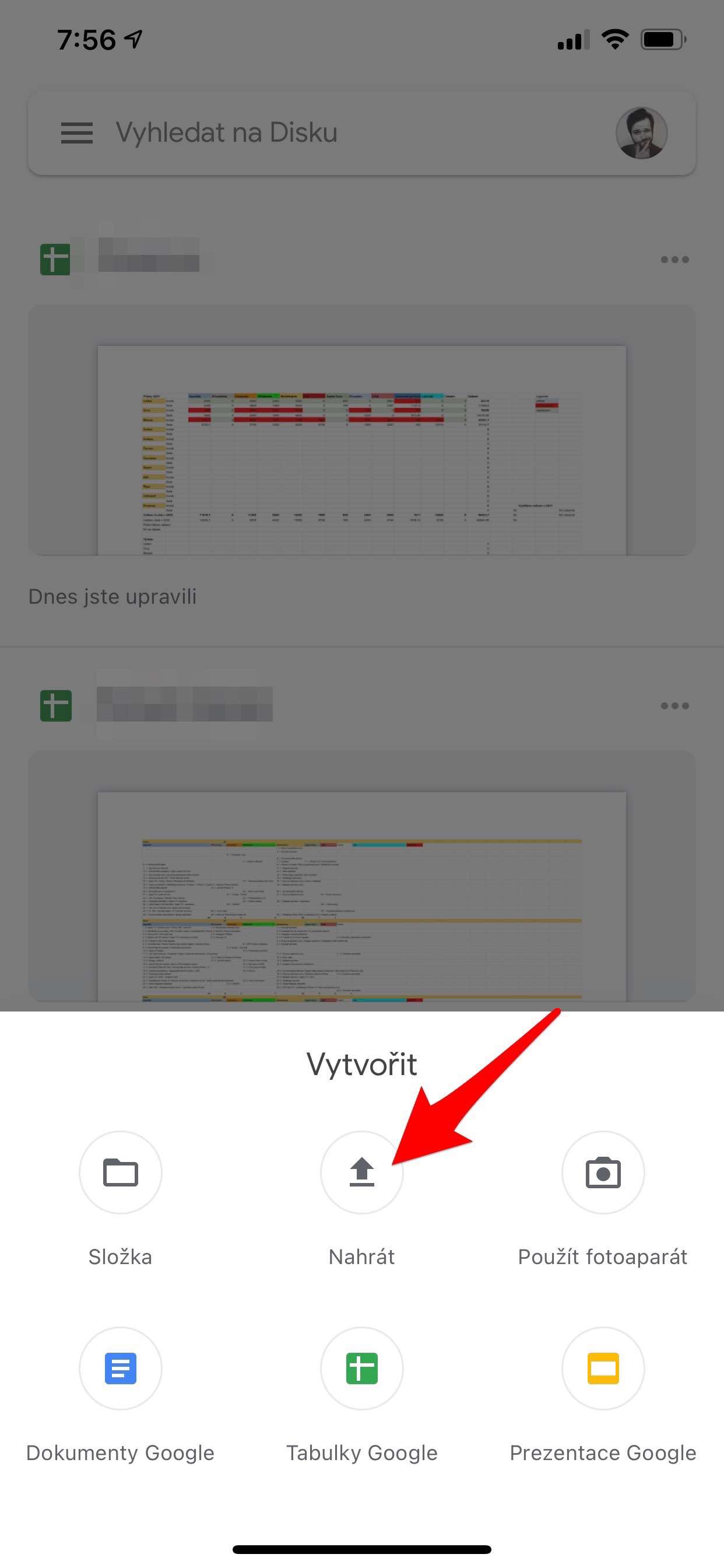 Pokud už iCloud Applu využíváte, ale z nějakého důvodu vám nevyhovuje, nebo pokud máte obě služby určené pro jinou práci, ale potřebujete mezi nimi přenášet data, není to nic složitého. V Disku Google stačí stisknout ikonu Plus, vybrat nabídku Nahrát a poté Procházet.