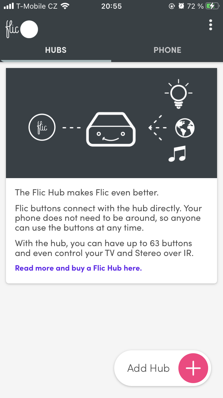 Co se HomeKit příslušenství týče, z vlastních zkušeností vím, že je to někdy poměrně obtížné z důvodů, které jsou nejspíše mezi nebem a zemí (koukám na tebe, Netatmo Security!). V tomto případě to však hladčeji proběhnout nemohlo. Po stažení aplikace Flic a zapojení Hubu přes USB do sítě bylo prvotní propojení s centrálou velmi rychlé. Po vytvoření účtu a propojení s centrálním hubem je možné začít zapojovat tlačítka (nebo další huby). Po připojení k nastavenému Hubu je možné s ním párovat Flic tlačítka, kterých je možné k jedné stanici připojit až 64. Jednoduše stačí stisknout „Add Flic to Hub“ a postupovat dle návodu v aplikaci. Po několika vteřinách je tlačítko spárované a nyní stačí nastavit jeho funkcionalitu. A zde je právě nejsilnější stránka celého Flic ekosystému.