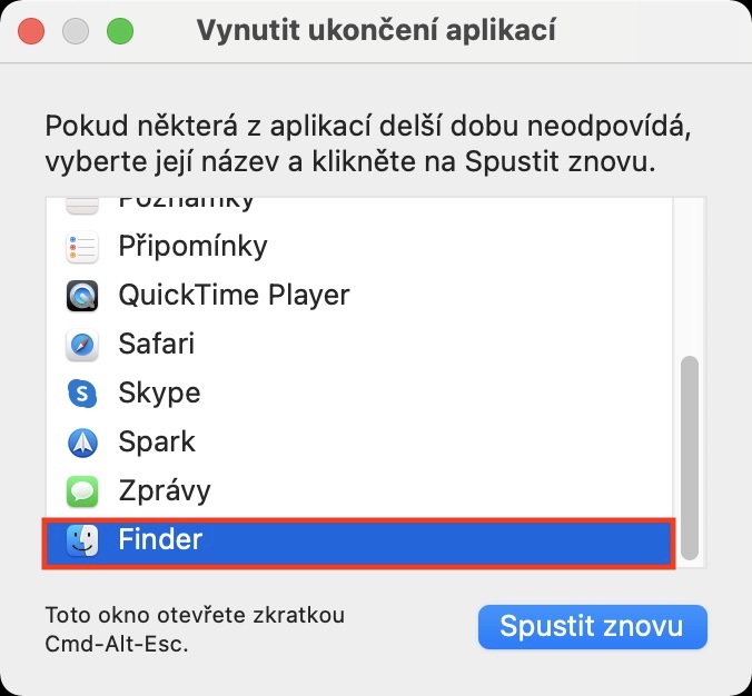 Pomocí klávesové zkratky Command + Option + Escape můžete na Macu otevřít jakousi obdobu správce úloh, kterého můžete znát z Windows. Najdete zde ale pouze seznam spuštěných aplikací, které můžete stejným způsobem jako je uvedeno výše vynuceně ukončit či restartovat. Nutno podotknout, že výše uvedený postup pro restart Finderu byste měli doopravdy využít až v případě, kdy se Finder dlouhé minuty nemůže „vzpamatovat“. Finder se totiž často dokáže zaseknout kvůli tomu, že aktuálně provádí nějakou složitou operaci. V případě, že jste Finderu vědomě zadali nějakou složitou úlohu, tak může dojít k zaseknutí, ale jen dočasnému, dokud se automaticky neobnoví.