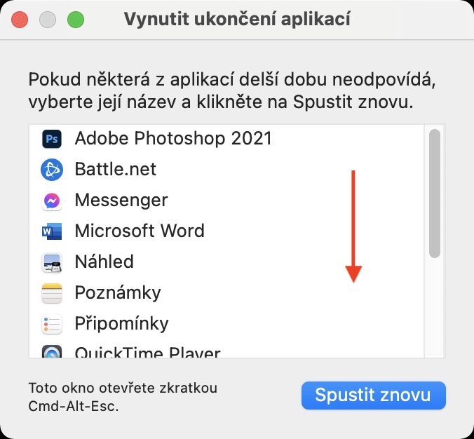 - Prvně je nutné, abyste na Macu stisknuli klávesovou zkratku Command + Option + Escape.