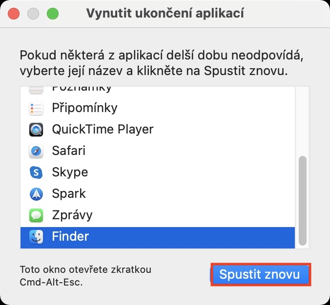Pokud se vám nějakým způsobem podaří na Macu zaseknout Finder, tak stačí, abyste jednoduše provedli jeho restartování. Toho můžete docílit následovně: