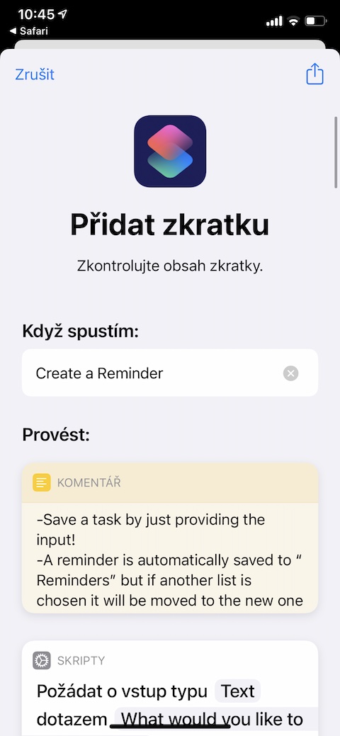 Zkratku Create Reminders stáhnete zde.