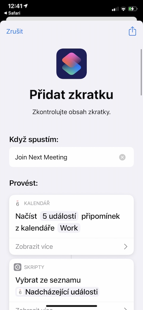 Zkratka s názvem Join Zoom se zajisté bude hodit všem, kteří se často účastní online schůzek prostřednictvím platformy Zoom nebo Google Meet. Tato zkratka vám ihned po svém spuštění zobrazí pět blížících se (případně již probíhajících) schůzek, ke kterým se prostřednictvím zkratky můžete také snadno a rychle připojit jedním jediným klepnutím – stačí, aby pozvánka na danou událost obsahovala příslušný odkaz nebo telefonní číslo. Zkratka vyžaduje přístup k nativnímu Kalendáři na vašem iPhonu.