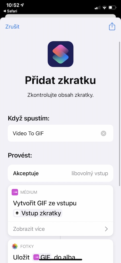 Máte na svém iPhonu video, které byste chtěli z jakéhokoliv důvodu převést na animovaný obrázek ve formátu GIF? Pro tyto účely sice v App Storu existuje spousta aplikací třetích stran, pokud ale chcete GIF z videa vytvořit opravdu rychle a velmi snadno, můžete k tomu využít zkratku s názvem Video to GIF. Vámi vytvoření GIF bude posléze automaticky uložen do galerie vašeho iPhonu.