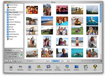 iPhoto byla první nativní aplikace v modernějších operačních systémech pro Macy, která uživatelům umožnovala práci s jejich fotografiemi. Společnost Apple tento software představila na konferenci Macworld v roce 2002, kde se kromě jiného dále představily například nové iMacy a iBooky. Původně byla aplikace iPhoto distribuovaná v rámci softwarového balíčku s názvem iLife. S pomocí aplikace iPhoto mohli uživatelé na svých Macích provádět import i export fotografií z digitálních fotoaparátů, mediálních nosičů nebo třeba flash disků. Ke svým snímkům mohli přidávat popisky a štítky, třídit je do složek nebo u nich provádět základní i mírně pokročilejší úpravy od přizpůsobení kontrastu či jasu až po korekci červených očí. Aplikace iPhoto rovněž nabízela uživatelům nástroje pro sdílení fotografií, jejich prezentaci ve formě slideshow, nebo třeba vytvoření plakátů, pohlednic, kalendářů a dalších produktů. V červnu roku 2014 společnost Apple oznámila, že hodlá ukončit vývoj aplikace iPhoto a začne pracovat na nové aplikaci s názvem Fotky. Aplikace iPhoto zmizela z App Storu v dubnu roku 2015, posledním operačním systémem, který ji podporoval, byl macOS Mojave 10.14.