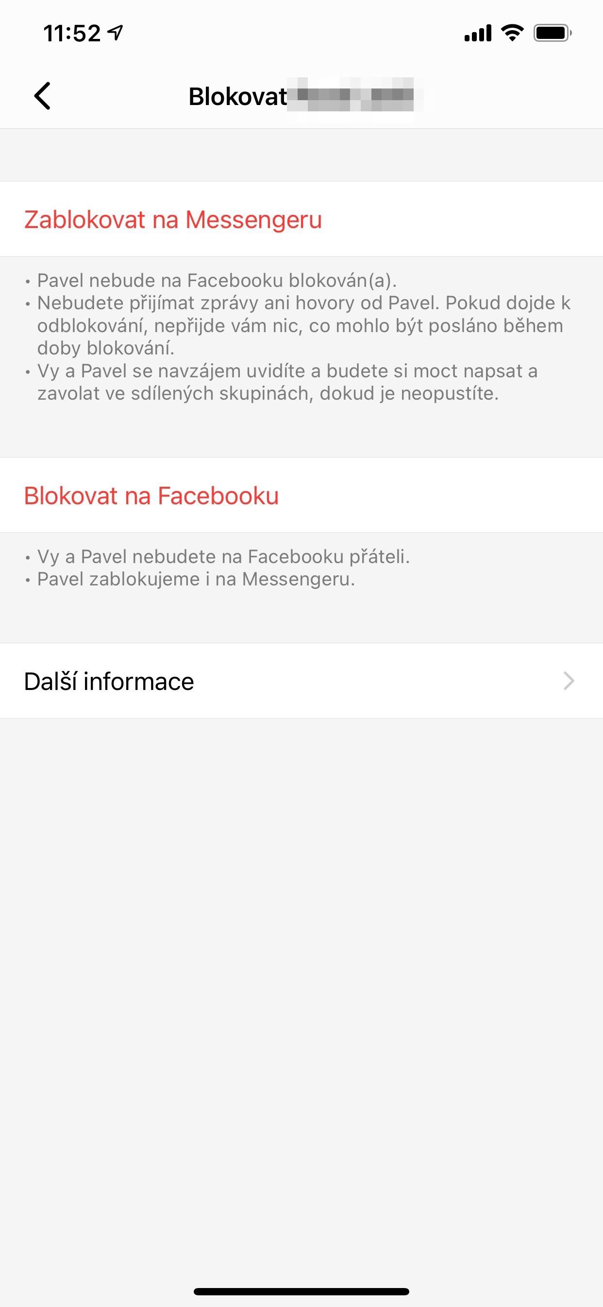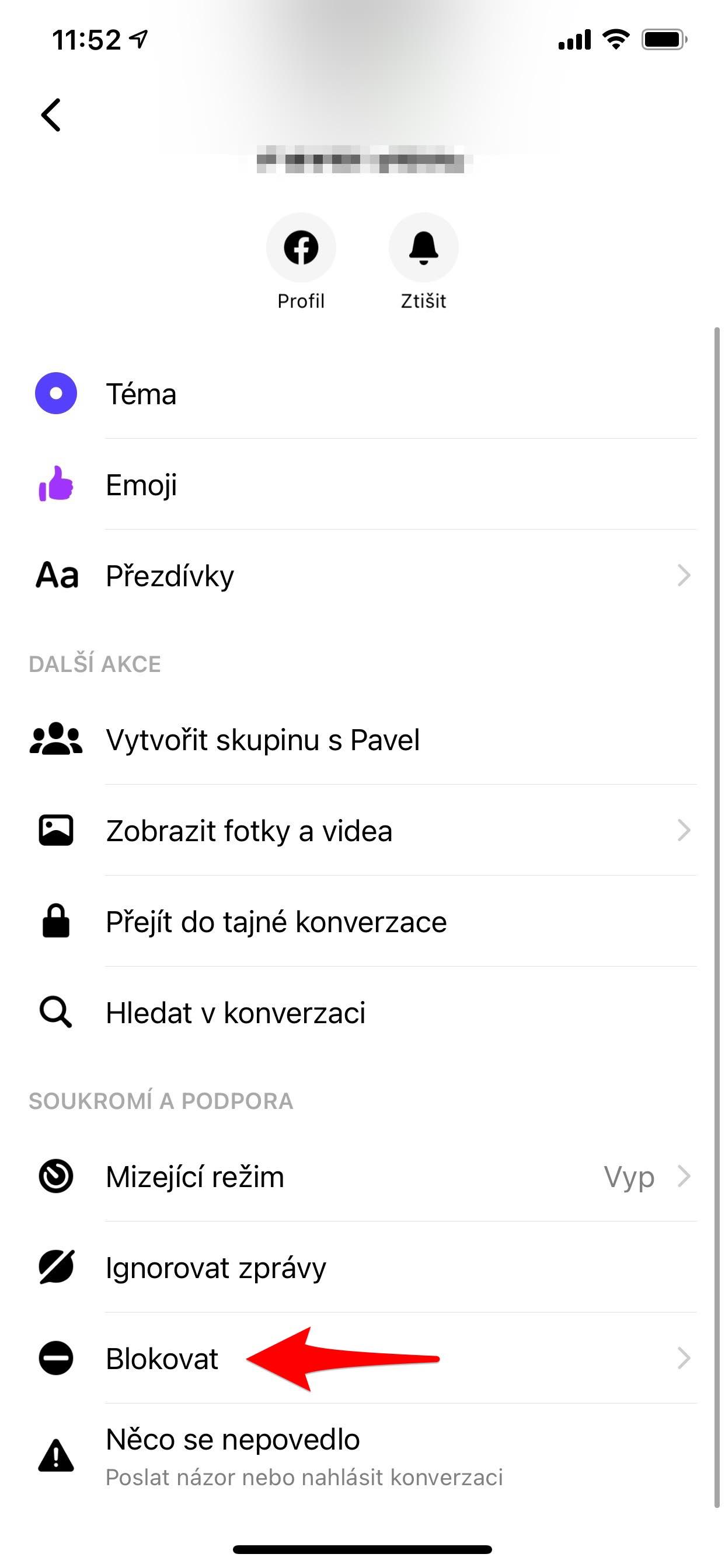 Mezi porušení zásad komunity patří šikana nebo obtěžování, výhrůžky a sexuální násilí nebo zneužití. Pamatujte, že i když je obsah zprávy nepříjemný, nemusí nutně Zásady komunity Facebooku porušovat. Pokud vás někdo v tajné konverzaci v Messengeru obtěžuje, můžete daného člověka kdykoli v aplikaci nebo v rámci celého Facebooku zablokovat. Jednoduše k tomu klepněte na jeho profilovou fotku, sjeďte níže a dejte Blokovat. Můžete tak učinit i z nabídky Soukromí.
