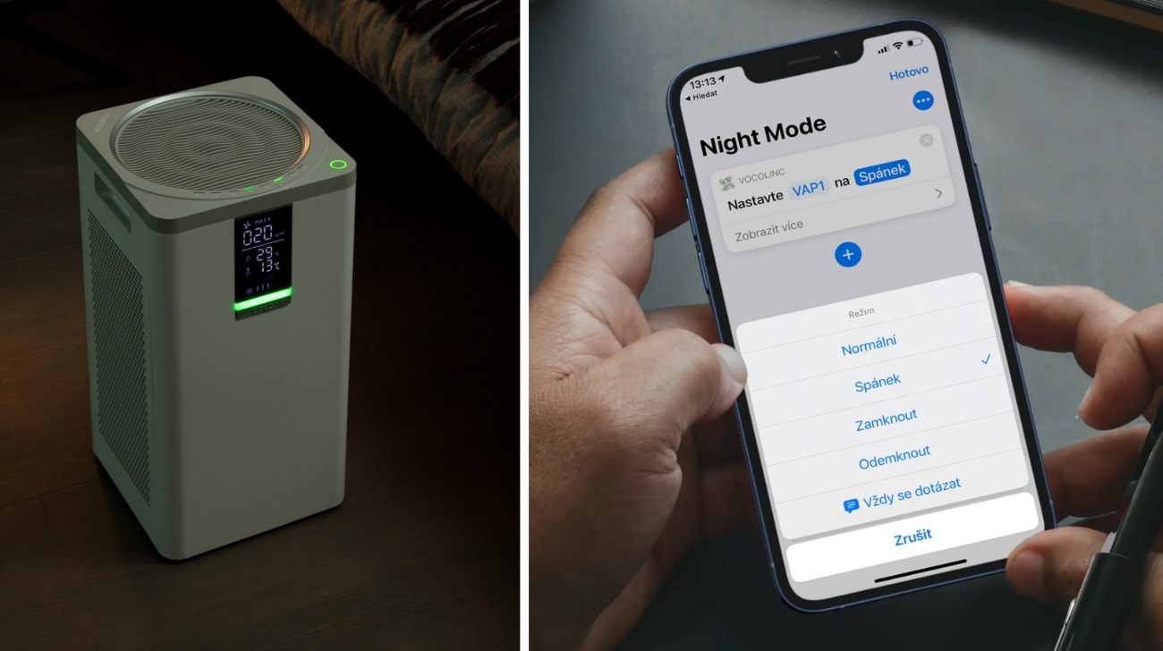 Čistička vzduchu nativně ovladatelná přes Apple HomeKit? VOCOlinc VAP1 je vůbec prvním a jediným takovým produktem na světě. Ocení ji všichni jablíčkáři, obzvlášť teď v pylové sezoně. Zatímco v aplikaci Domácnost můžete nastavit a zautomatizovat její zapnutí/vypnutí a level výkonu, aplikace Zkratky umožní navíc hrát si s režimem spánku a dětským zámkem.