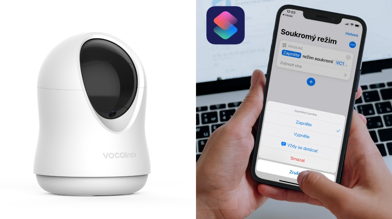 Podobnou vychytávku nabízí i zbrusu nová vnitřní kamera VOCOlinc VC1 Opto, která je trhu teprve měsíc. Disponuje fyzickým soukromým režimem, který aktivujete nebo vypnete v aplikaci VOCOlinc. Právě přes zkratky ji však můžete spustit hlasovým pokynem, nebo přidat jako součást větší automatizace. Princip je stejný jako u čističky vzduchu.