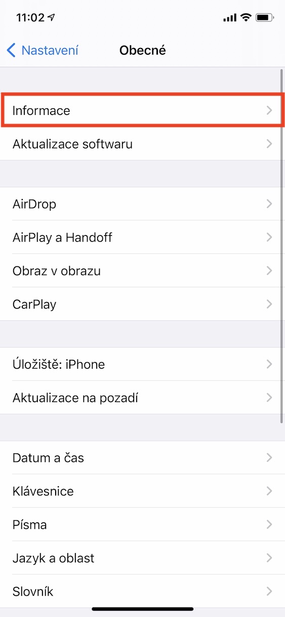 - Na další obrazovce se pak přesuňte do sekce Informace.