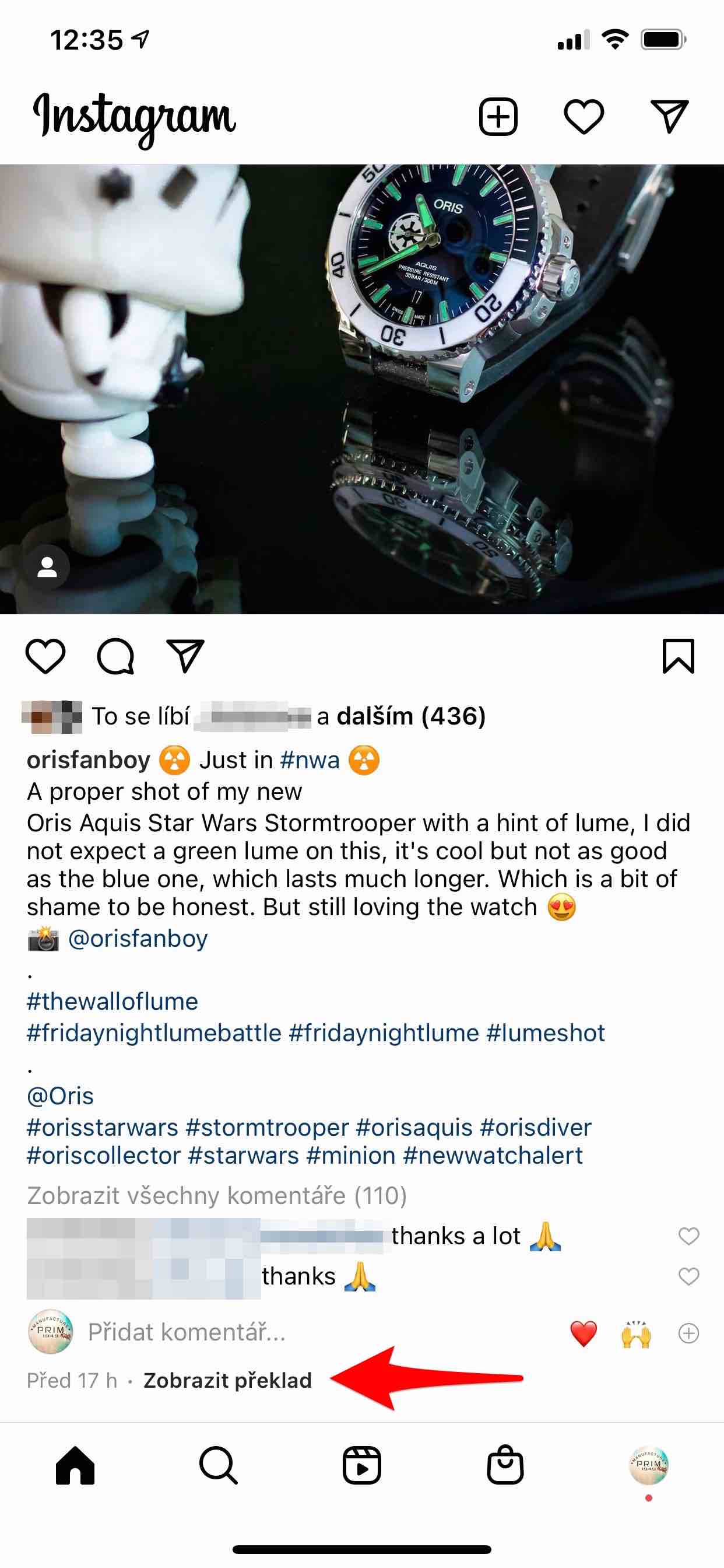 Ty nejdůležitější funkce jsou mnohdy tak skryté, že si jich člověk v nepřehledném rozhraní ani nevšimne. Pokud v síti sledujete množství cizojazyčných uživatelů, jejichž řečí zrovna dvakrát nevládnete, umožňuje vám Instagram jejich text přeložit do češtiny. Zobrazení překladu je přitom přítomno hned u příspěvku, jen se ve změnit textu snadno přehlédne, a hlavně se na něho mnohdy i špatně trefuje.