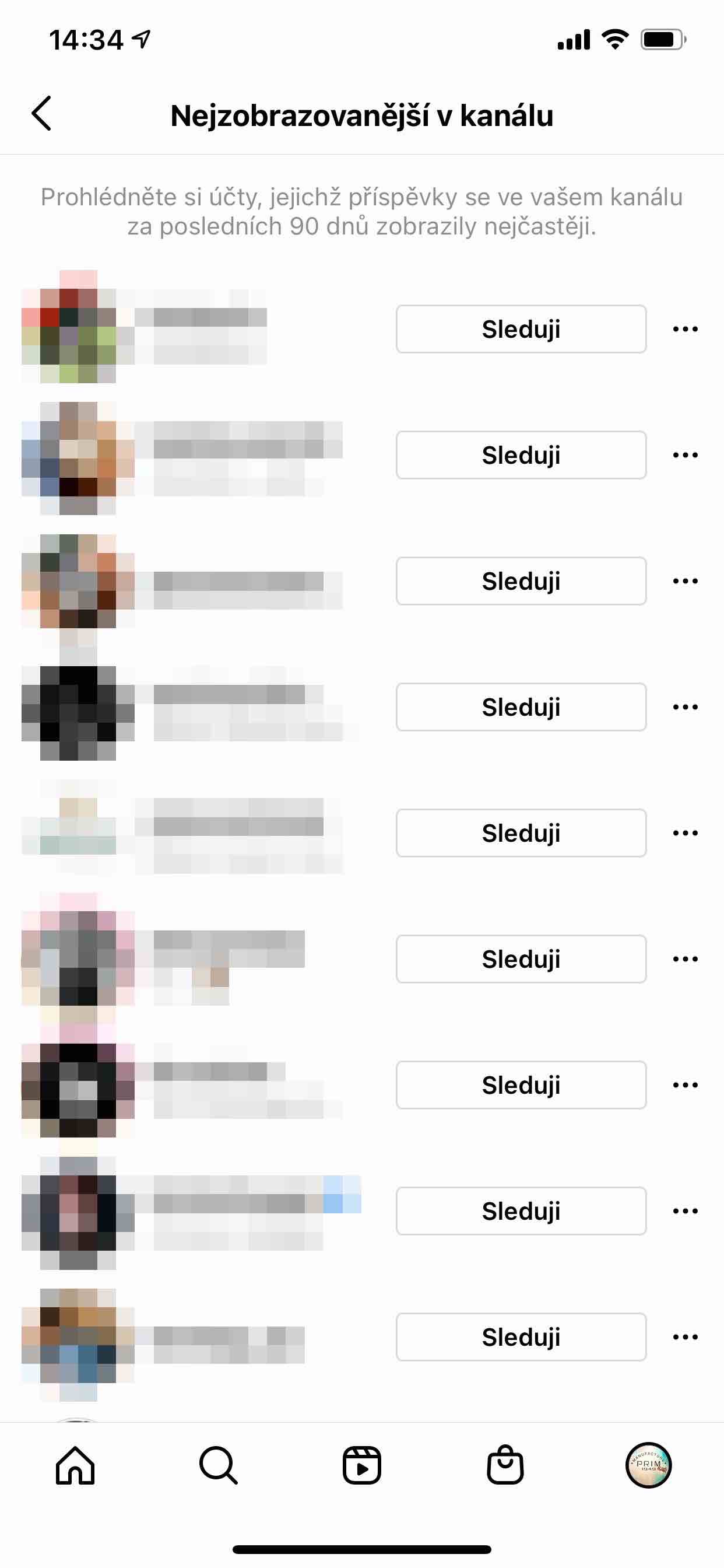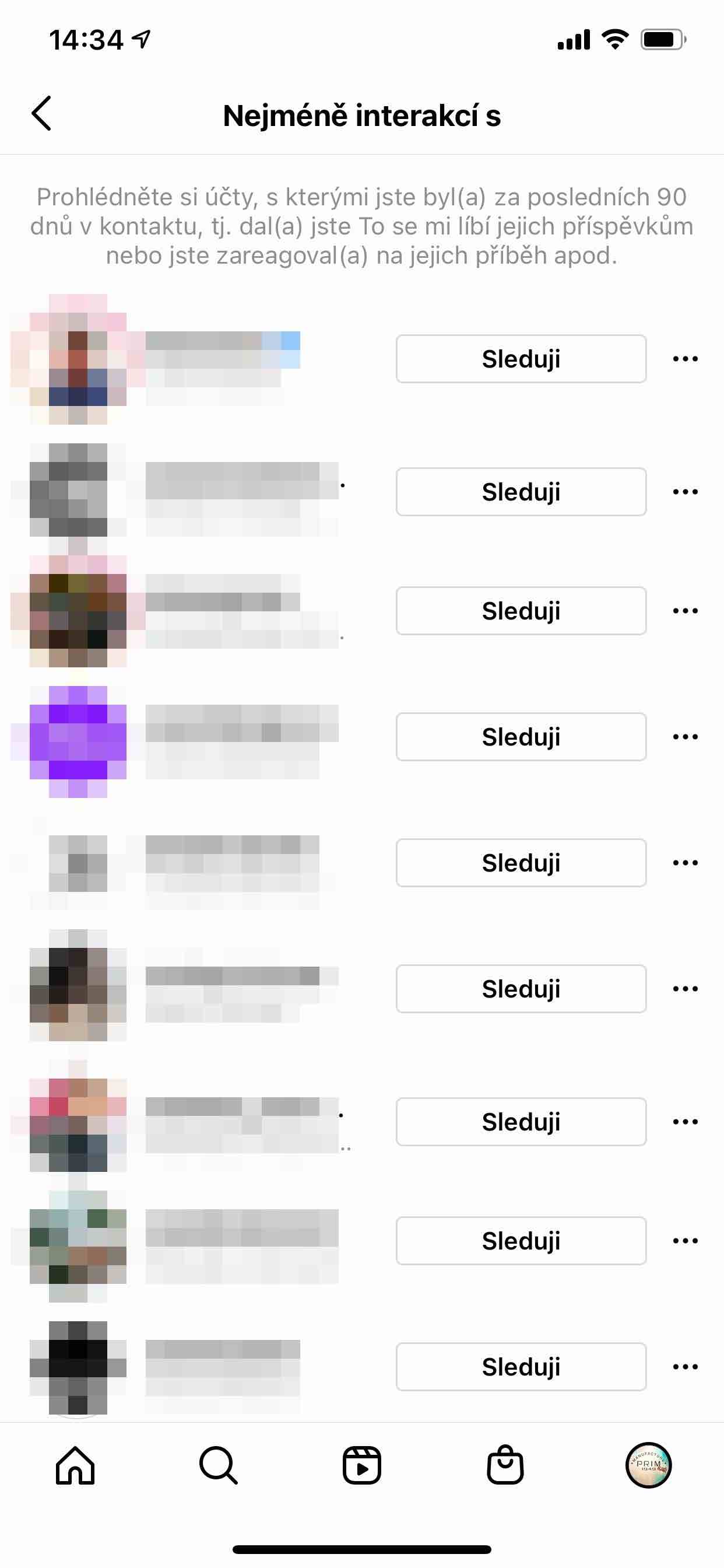 Seznam najdete na stránce svého profilu pod nabídkou Sleduji. Zde se vám zobrazuje sekce Kategorie, ve které si můžete zobrazit účty, se kterými máte interakcí nejméně, nebo ty, které se vám na domovské obrazovce zobrazují nejčastěji. Samozřejmě je odtud můžete i přestat okamžitě sledovat.