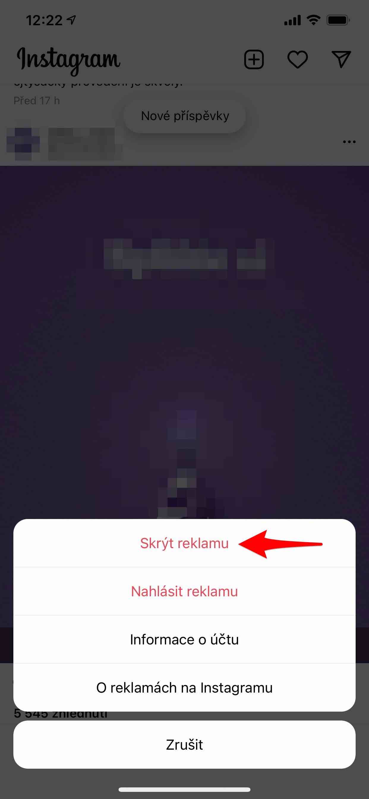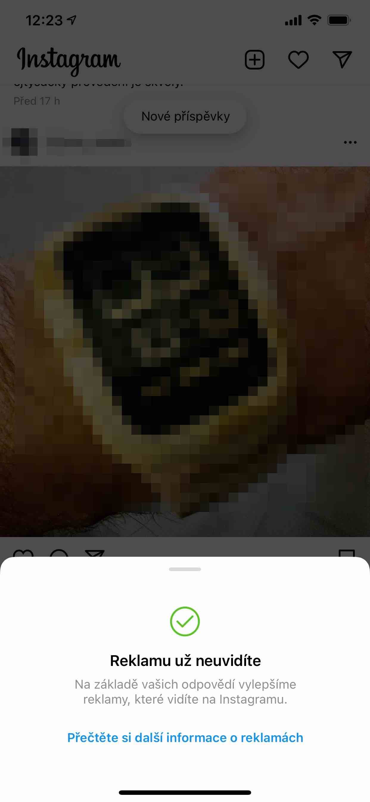 U sponzorovaného příspěvku tak klikněte na ikonu tří teček a vyberte možnost Skrýt reklamu. Poté můžete Instagramu ještě sdělit, proč vám danou reklamu už nemá zobrazovat.
