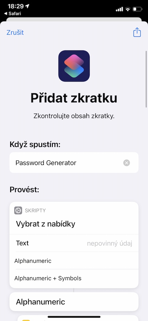 Jak název napovídá, umožní vám zkratka s názvem Password Generator kdykoliv a kdekoliv rychle a jednoduše vygenerovat jakékoliv heslo na základě vašich požadavků. Můžete si zvolit, zda se má vaše heslo skládat pouze z písmen, nebo z písmen, číslic a znaků, a nastavit také jeho další parametry.
