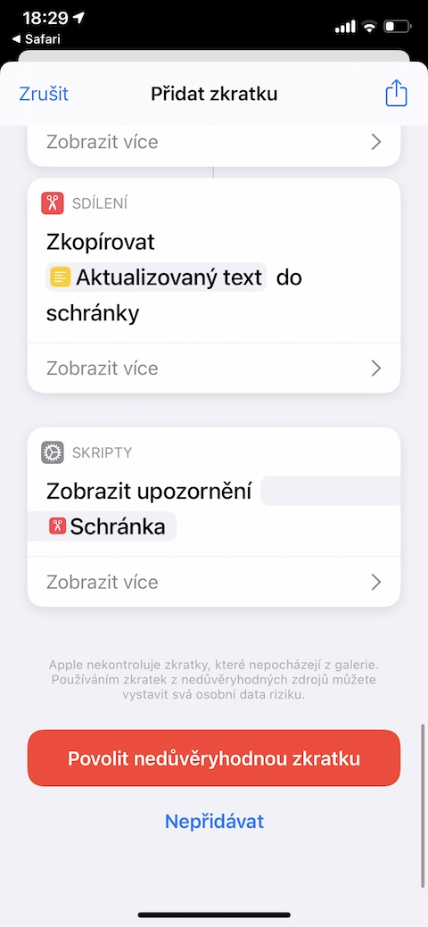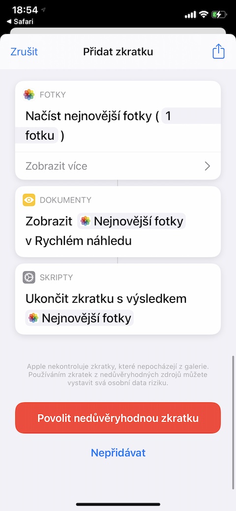 Se závěrem týdne vám opět přinášíme přehled dalších užitečných zkratek pro iOS. Než se pustíte do jejich instalace a zkoušení, připomínáme, že je potřeba každou zkratku otevřít v prostředí prohlížeče Safari na iPhonu, do kterého ji budete chtít nainstalovat. Ujistěte se také, že jste v Nastavení -> Zkratky povolili používání nedůvěryhodných zkratek.