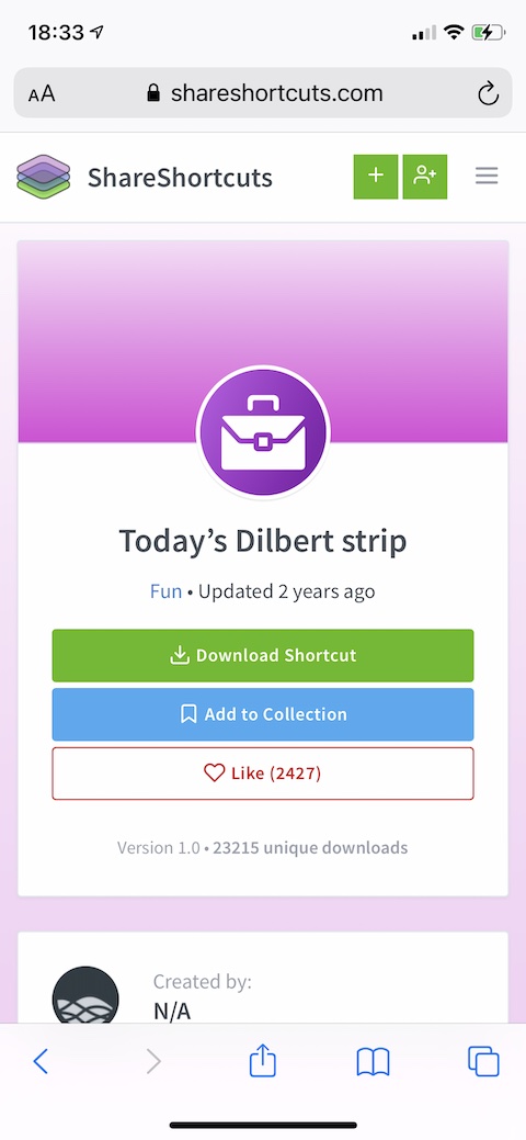 Patříte mezi fanoušky komiksových stripů s legendárním Dilbertem? Pak by ve vaší knihovně rozhodně neměla chybět ani tato zkratka. Její účel je jednoduchý – poté, co ji aktivujete, vám na displej vašeho iPhonu vygeneruje náhodný komiksový strip s vaším oblíbeným hrdinou. Užijte si svou denní dávku sarkasmu.