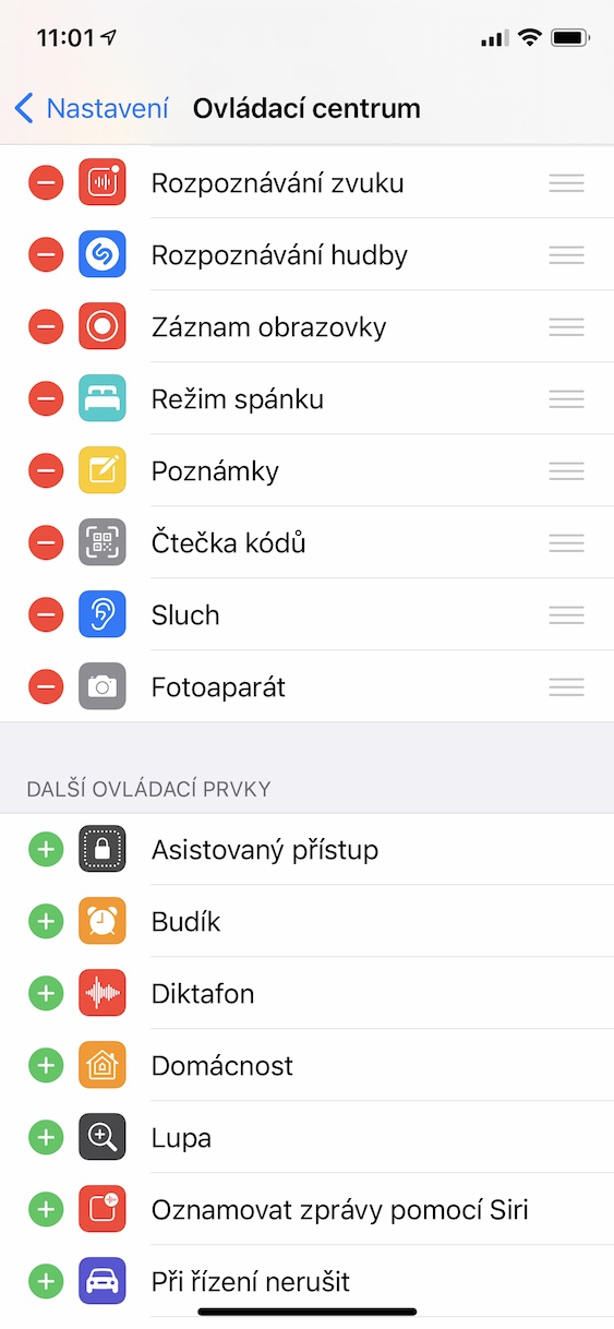 - Jakmile tak učiníte, tak níže rozklikněte kolonku Ovládací centrum.