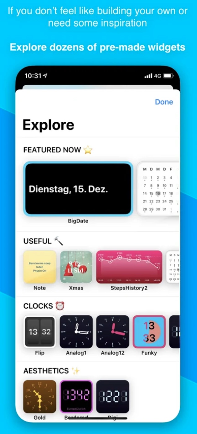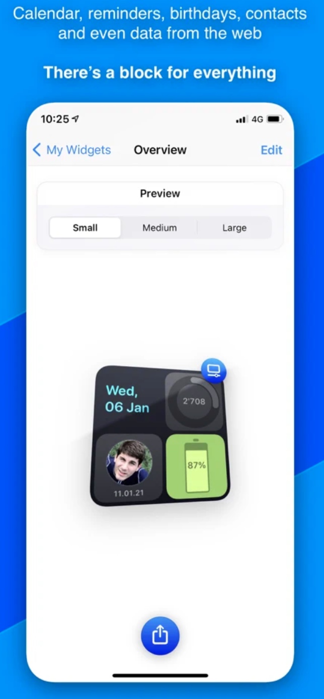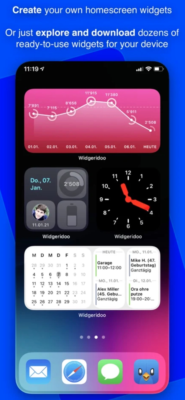 Widgeridoo je dalším ze šikovných iOS nástrojů, určených pro tvorbu, přizpůsobení a správu widgetů. Můžete si zde vytvářet widgety s kalendářem, narozeninami, daty a odpočty, ale třeba také s vlastním textem, fotografiemi a obrázky. Aplikace Widgeridoo nabízí také možnost přidání widgetu s informacemi o vašich zdravotních datech.