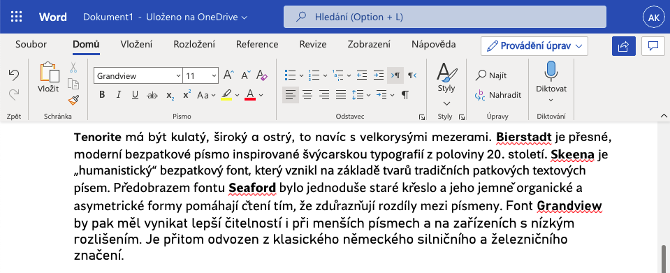 Výběr toho ideálního bude probíhat po několik měsíců. Už nyní jsou v rámci prostředí Microsoft 365 všechny nové fonty dostupné k běžnému používání. Když se ale podíváte na obrázek výše, uvidíte, že Tenorite má mezery možná až příliš velké, Skeena nemá úplně pěkně lomené písmo, Seaford ne zrovna ideálně pracuje s háčky a kroužky nad určitými písmeny a Grandview je příliš roztažený. Bierstadt by tak mohl být jako jediný bez jakýchkoli výhrad, navíc se ze vše uvedených písem Calibri podobá nejvíce.