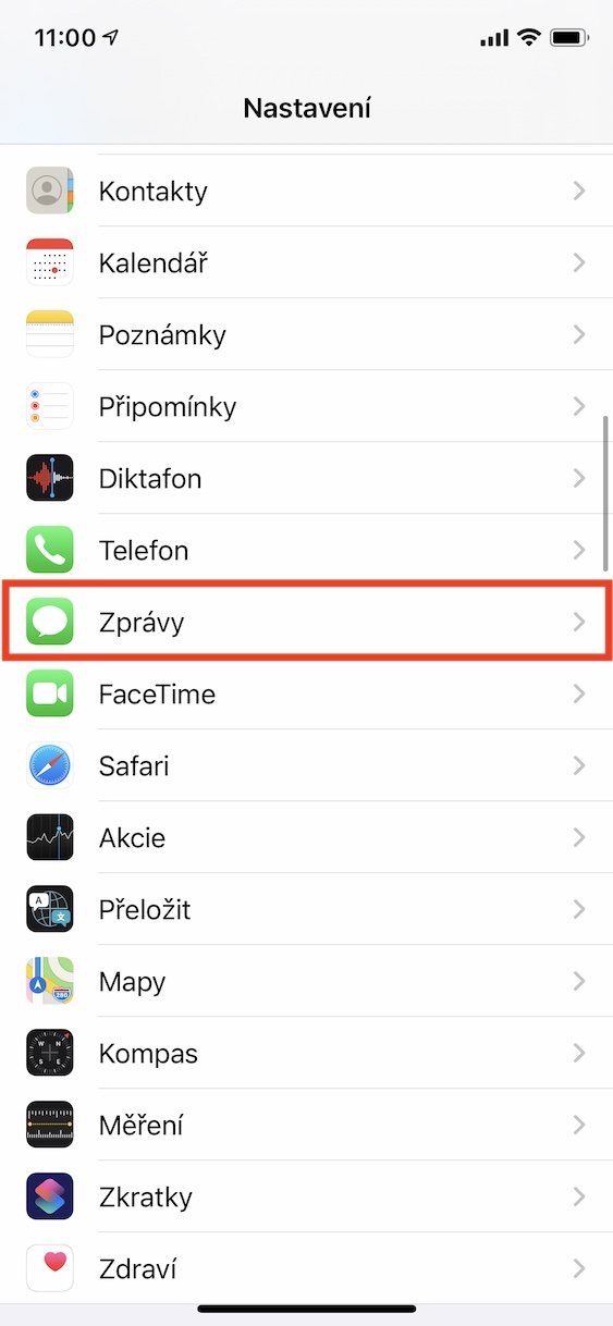 - Zde pak lokalizujte a rozklikněte kolonku s názvem Zprávy.