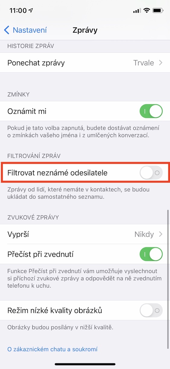 Jak na iPhone nastavit filtrování zpráv od neznámých uživatelů