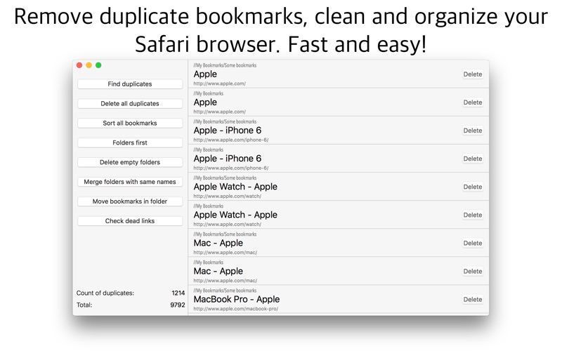 Jestliže pro prohlížení internetu používáte nativní prohlížeč Safari a častokrát si vytváříte záložky, mohla by se vám hodit aplikace BookmarkApp. Tento nástroj totiž dokáže pročistit duplicitní záznamy, které vám tak pomůže uklidit a případně i zorganizovat.