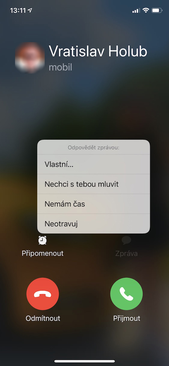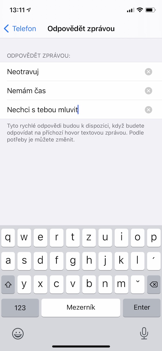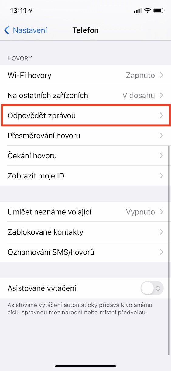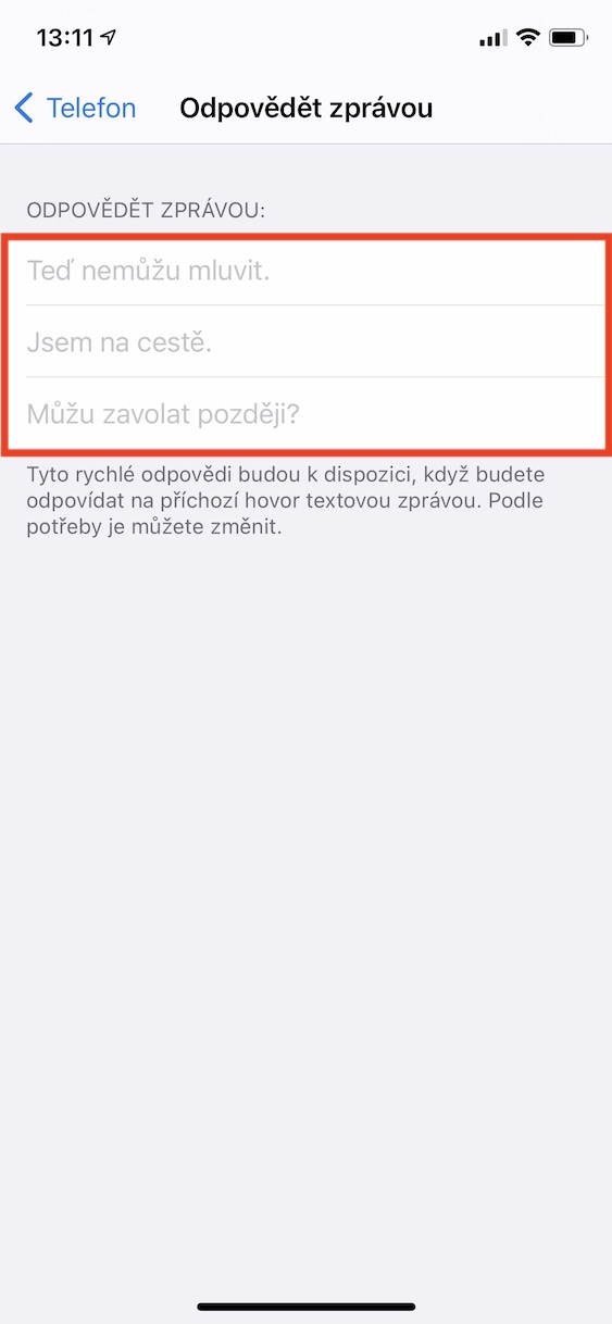 Jak na iPhone upravit rychlé odpovědi zprávou na příchozí hovor
