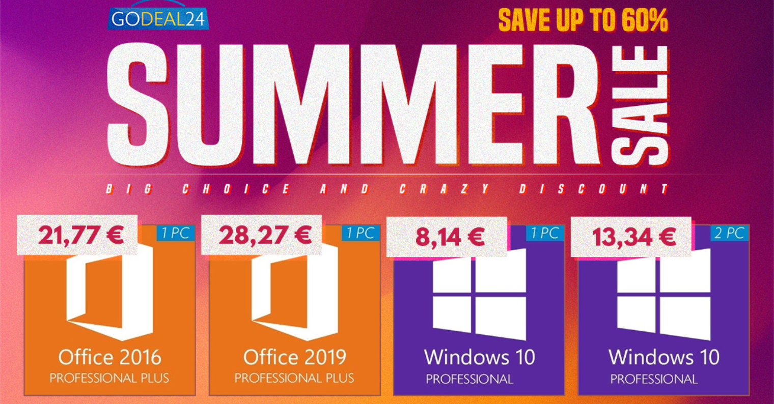 Obchod Godeal24 odstartoval letní slevy, díky čemuž si můžete s pomocí speciálního slevového kódu pořídit Windows 10 Pro nebo Microsoft Office za bezkonkurenčně nejnižší ceny. Díky těmto slevám tak máte skvělou příležitost značně ušetřit a prakticky v okamžiku vylepšit váš počítač.