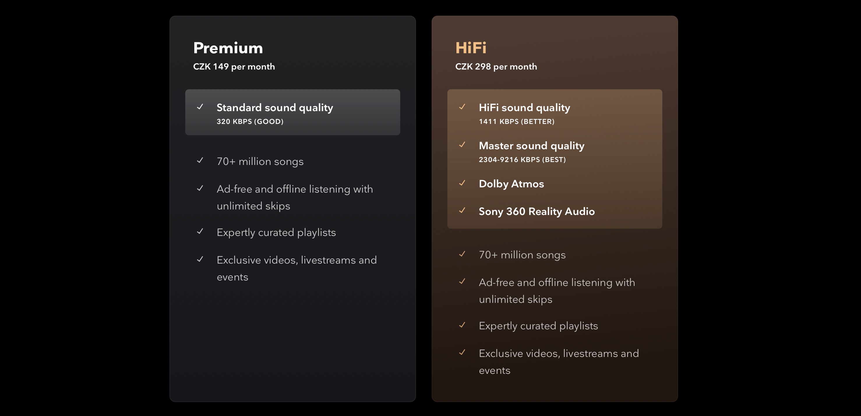 Jak už byl nakousnuto výše, tak Apple po uvolnění Apple Music HiFi žádným způsobem nezmění aktuální předplatné a uživatele nebude stát ani korunu navíc. Kdežto u Tidalu jsou k dispozici dvě verze předplatného – Premium a HiFi. V rámci předplatného Premium získáte obyčejnou kvalitu zvuku, tudíž pro poslech v lepší kvalitě potřebujete Tidal HiFi – a právě s ním budeme Apple Music HiFi v tomto článku srovnávat. Co se týče ceny, tak Apple Music vás vyjde pro jednotlivce na 149 Kč, v případě Tidel HiFi je cena přesně dvojnásobná, tedy 298 Kč. Obě služby nabízí slevu pro studenty, společně s předplatným pro celou rodinu – tudíž pokud chcete, tak můžete ušetřit.
