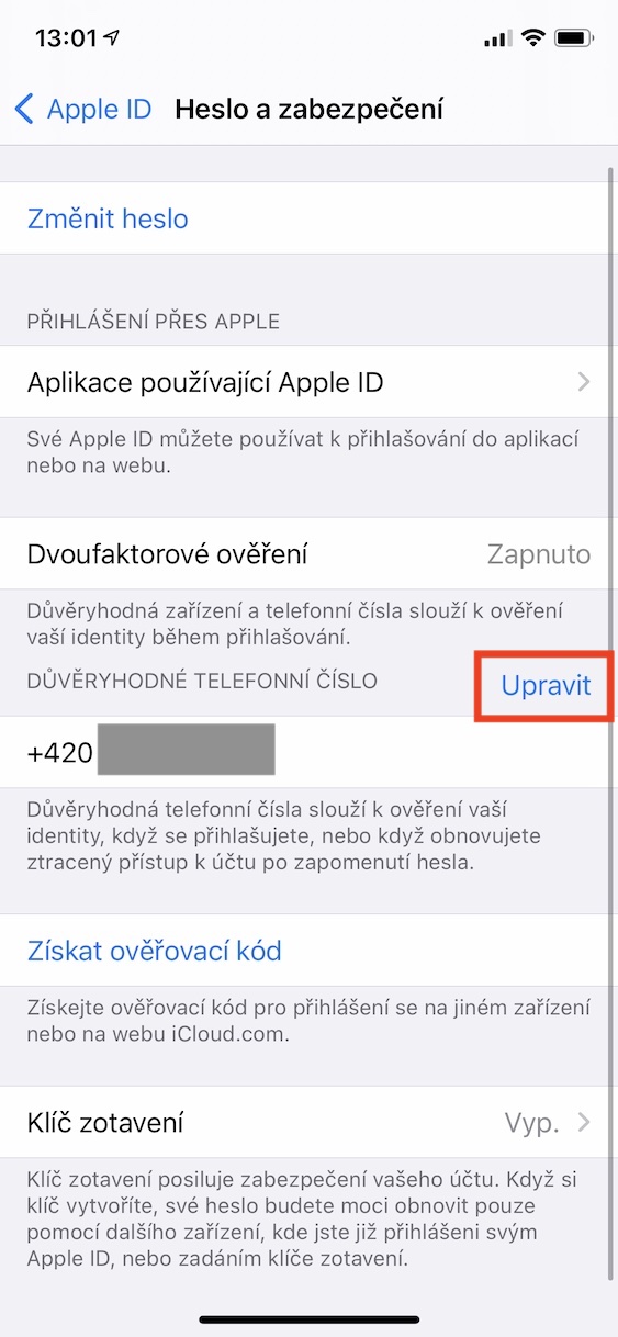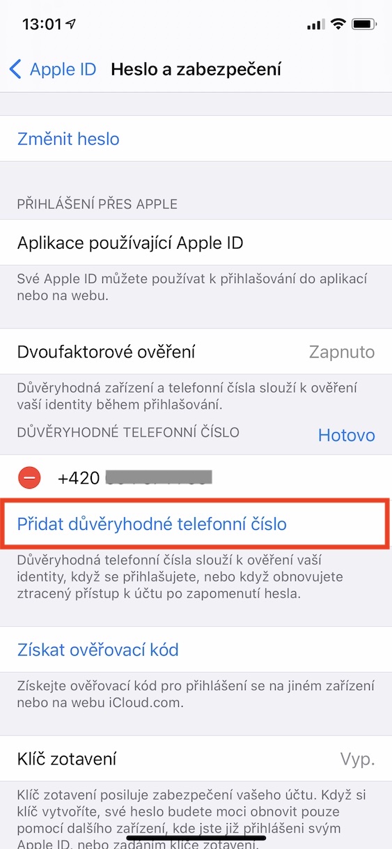 Jak na iPhone odstranit či změnit důvěryhodné telefonní číslo pro dvoufaktorové ověření