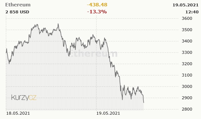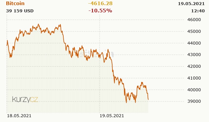 Pád je natolik významný, že včera Čína omezila kryptoměnové transakce, což pochopitelně hodnotu kryptoměn opět negativně ovlivnilo. Jde přitom o zemi, kde se kryptoměny těží nejčastěji. Například světový podíl těžby nejznámější kryptoměny na světě, tedy bitcoinu, je zde 75 %. Bitcoin se tak dostal pod hranici 40 tisíc dolarů, a to vůbec poprvé od letošního února. Dnes ráno byla hodnota „jedné mince“ 38 585 dolarů, tedy necelých 801 tisíc korun. Přitom ještě včera byla hodnota o 100 tisíc korun vyšší. Přibližně před měsícem to bylo dokonce 64 829 dolarů, tedy přibližně 1 345 980 korun.