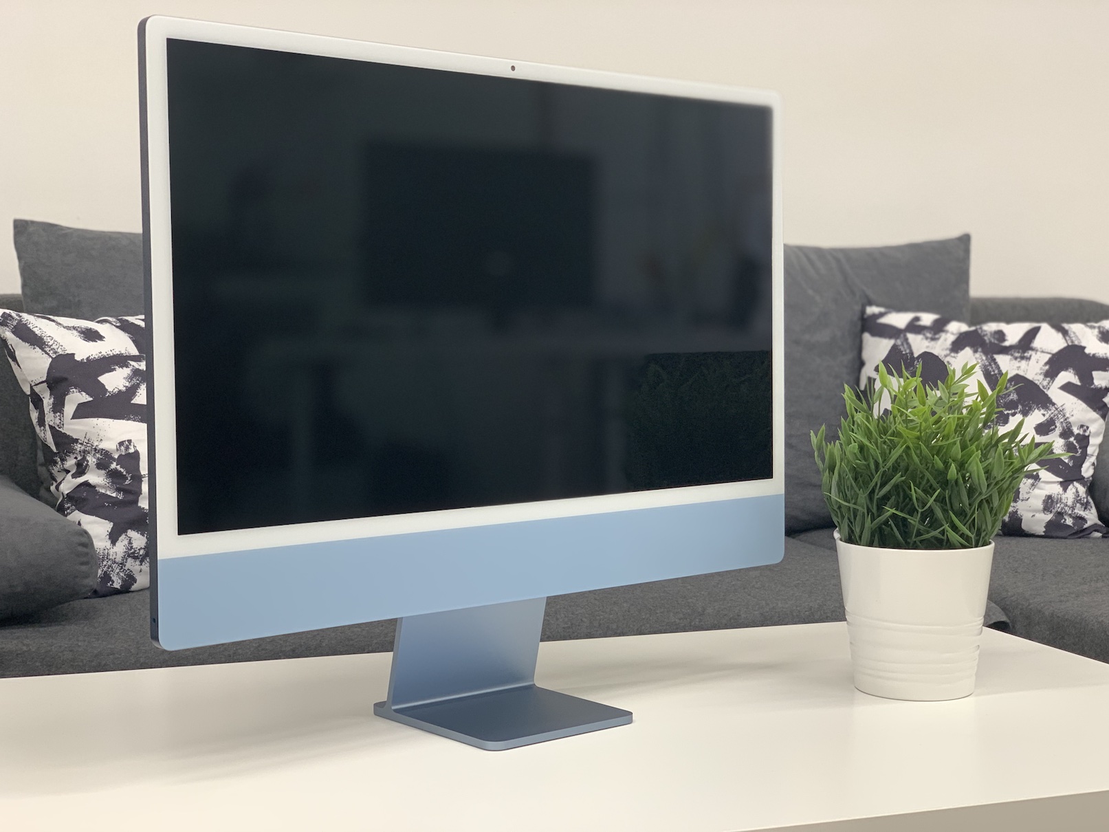 Hned na začátek tohoto odstavce bych rád zmínil, že se v tomto článku doopravdy podíváme pouze na první pocity a dojmy z 24″ iMacu (2021). Rozhodně tento článek neberte jako recenzi či cokoliv podobného. Samotná recenze samozřejmě přijde, avšak až během několika následujících dnů, během kterých si tento nový jablečný počítač pořádně osahám. Co se týče nějakých všeobecných prvních dojmů, tak jsou z většiny stránek kladné. To, z čeho mi spadla brada prakticky ihned po rozbalení, tedy ještě před zapnutím, je barva – především tedy na zadní straně. Jak už bylo zmíněno v unboxingu, tak nám dorazil 24″ iMac v modrém zbarvení. Na produktových fotografiích se mi barvy nových iMaců zcela upřímně moc nelíbily, avšak jakmile jsem viděl modré zbarvení na vlastní oči, okamžitě jsem změnil názor. Samozřejmě nechci mluvit i za ostatní barvy, avšak v mém případě je modrá krásně tmavá a vyvolává jakýsi pocit luxusu a hlavně nevšednosti.