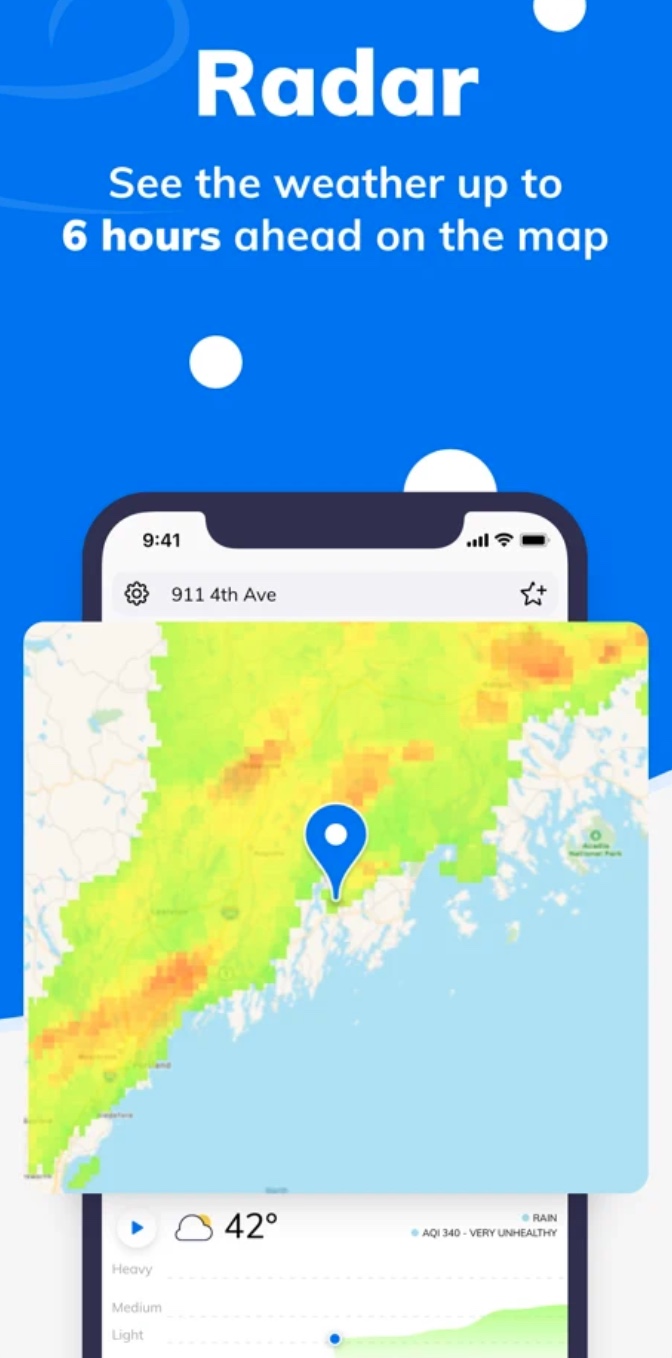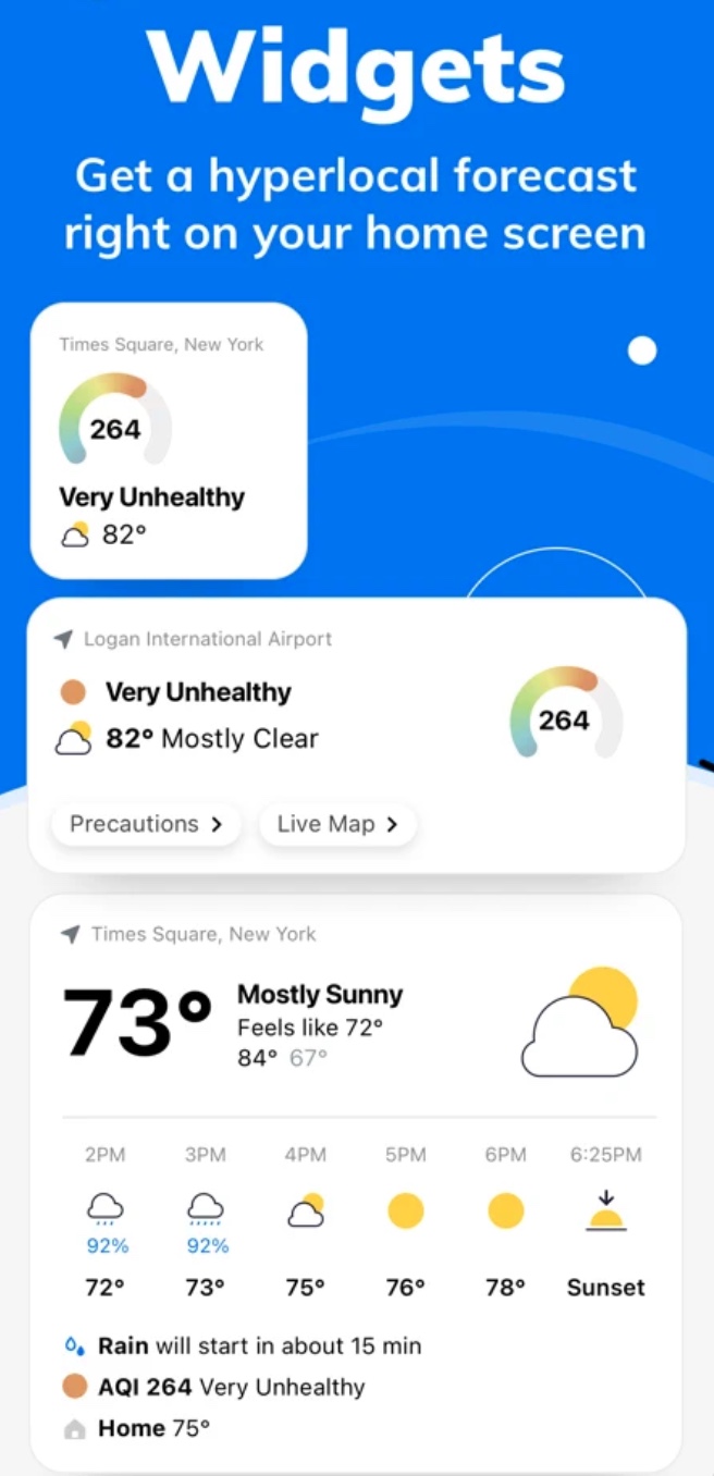 Aplikace pro předpověď počasí často nabízí také zajímavé, přehledné a velmi informativní widgety na plochu iPhonu – a Weather by Tomorrow.io v tomto směru opět netvoří žádnou výjimku. Můžete si vybrat přesně takový widget, který potřebujete – na výběr máte z několika různých druhů i velikostí podle toho, jaké informace si chcete nechat zobrazit.