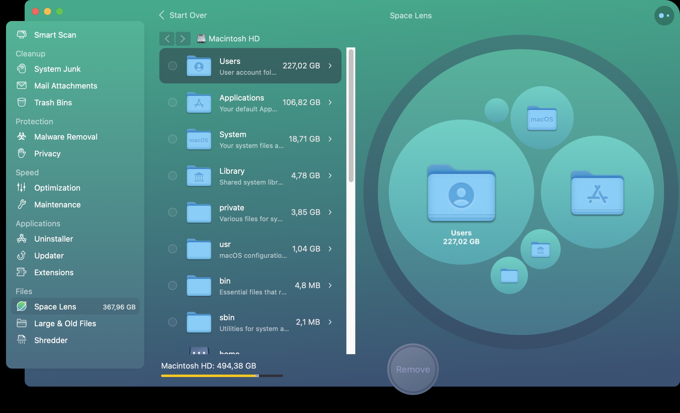S odstraněním nepotřebných souborů vám dokáží mimo jiné pomoci také speciální aplikace. Osobně už delší dobu využívám známý čistič CleanMyMac X, který nabízí hned několik různých nástrojů pro uvolnění místa v úložišti. Mezi jeden z nejlepších patří Space Lens, kdy vám aplikace vytvoří jakési bubliny, které mají velikost podle toho, kolik v sobě mají dat. Postupně si tak můžete proklikat největší bubliny a zjistit, kde se nachází nejvíce dat, a zdali s nimi nelze něco dělat. Nechybí samozřejmě nástroje pro odstranění nepotřebných systémových dat, apod. CleanMyMac X mohu rozhodně doporučit.