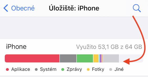 Pokud byste chtěli zjistit, kolik máte aktuálně volného místa v úložišti iPhonu, popřípadě kolik místa vám kategorie Jiné zabírá, tak se nejedná o nic složitého. Stačí, abyste se drželi tohoto postupu: