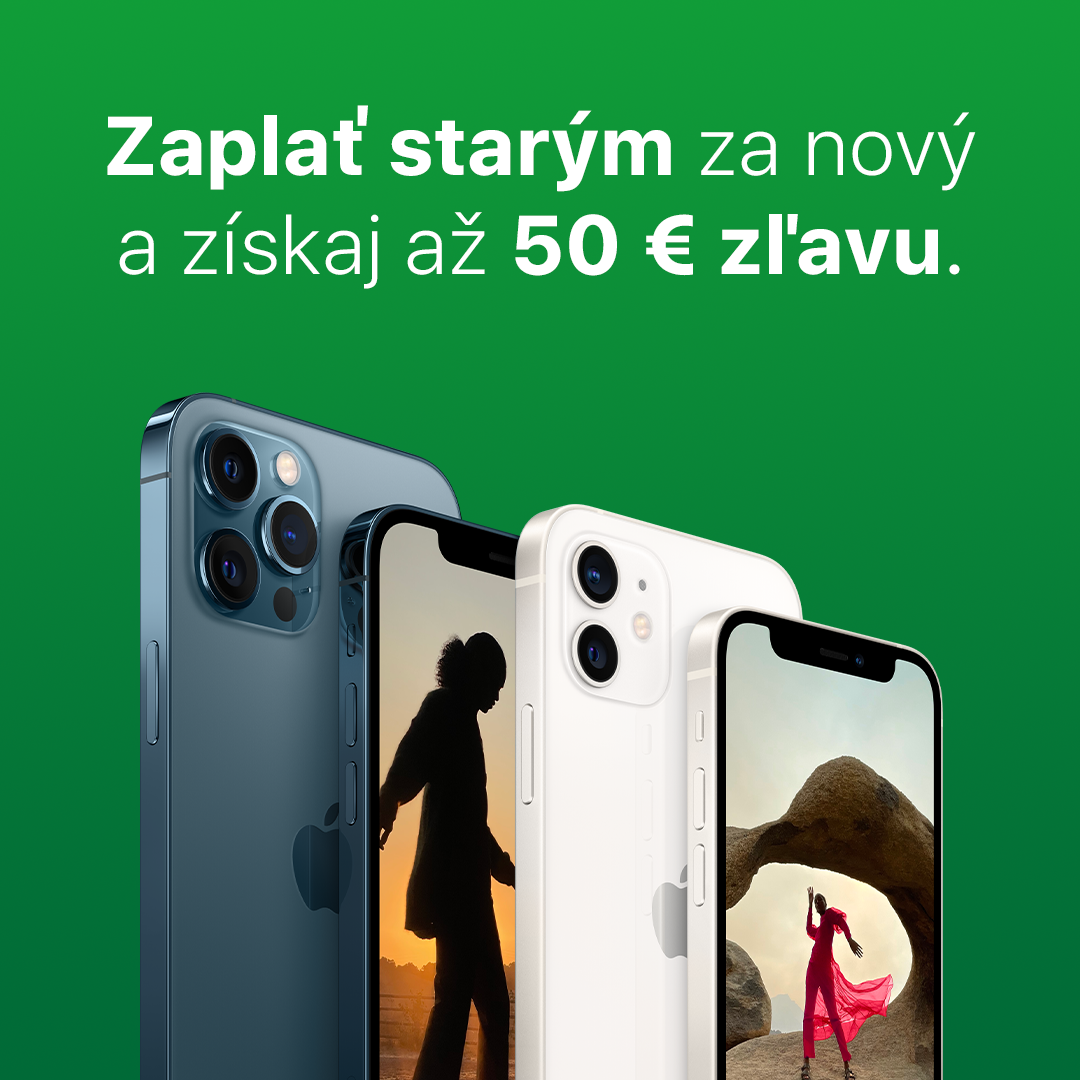 Brousíte-li si zuby na nové iPhony a zároveň se chcete zbavit svého starého, využít můžete slevové akce Zaplať starým za nový. K výkupní ceně vašeho starého zařízení vám totiž iStores.sk přidá až 50eurový bonus na nákup iPhonu 12, 12 Pro či 12 Pro Max, což už na konečné ceně určitě pocítíte. Ale pozor, akce končí 27. června.