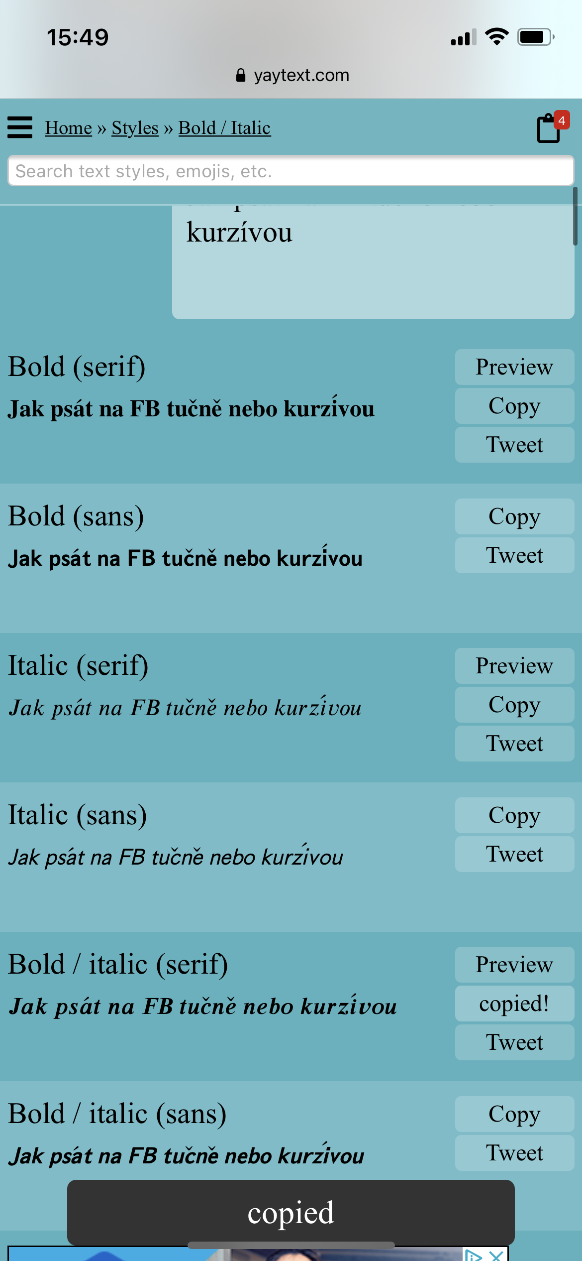 Stačí jít na stránku yaytext.com, kde najdete políčko Your Text, do kterého napíšete váš text. Následně si níže jen vyberete, jaké jaký styl písma chcete použít a zvolíte možnost Copy. Je jedno, zda použijete iPhone, Mac nebo alternativní zařízení v podobě Androidu nebo PC. Jakmile máte text v dané podobě zkopírován, stačí jej vložit do některé ze sociálních sítí a status publikovat.