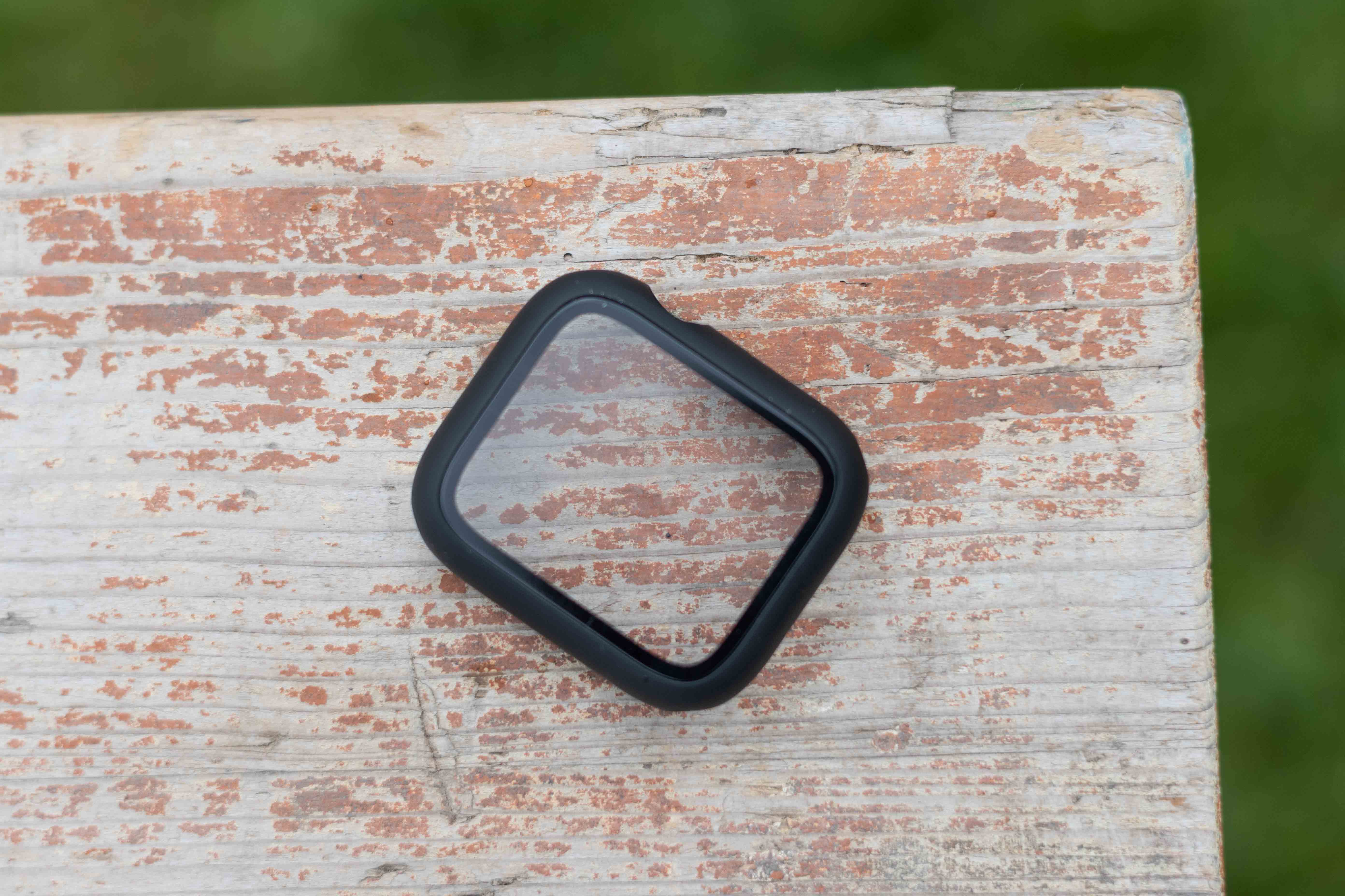 O ochranu boků hodinek se stará poměrně minimalistický plastový rámeček, který je dostupný buď v čiré, nebo v černé barevné variantě. Nám do redakce dorazila konkrétně černá varianta, která je jednak matná a jednak její povrch působí na dotyk i lehce pogumovaně, díky čemuž na ní nejsou hned vidět šrámy. Sklo je s plastovým krytem napevno spojeno, díky čemuž je tak sejmutí či nasazení celé ochrany extrémně jednoduché. Provádí se de facto jen tak, že jí na hodinky po vyčištění jejich displeje “nacvaknete” a máte zkrátka hotovo.