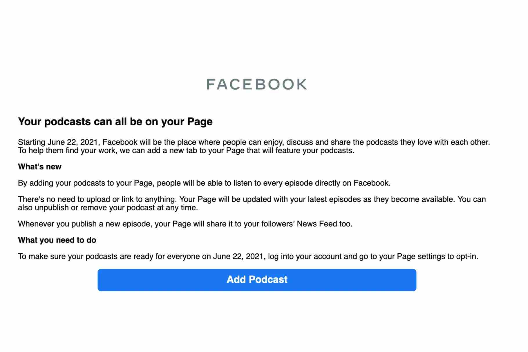 Podcasty do Facebooku dorazí konkrétně v úterý 22. června a to po celém světě. Aplikace i webové rozhraní je totiž na ně již připravené, díky čemuž tak bude Facebooku stačit jen provést určité úpravy na svých serverech a tím tak dosud skryté možnosti odkrýt. Co se pak týče podoby podcastů jako takových, jednat se bude de facto o totéž, co nabízí Apple, Spotify či veškerá ostatní konkurence. Samozřejmostí pak bude možnost jejich komentování, sdílení a tak podobně, čímž. by mohla Zuckerbergova společnost zaujmout.