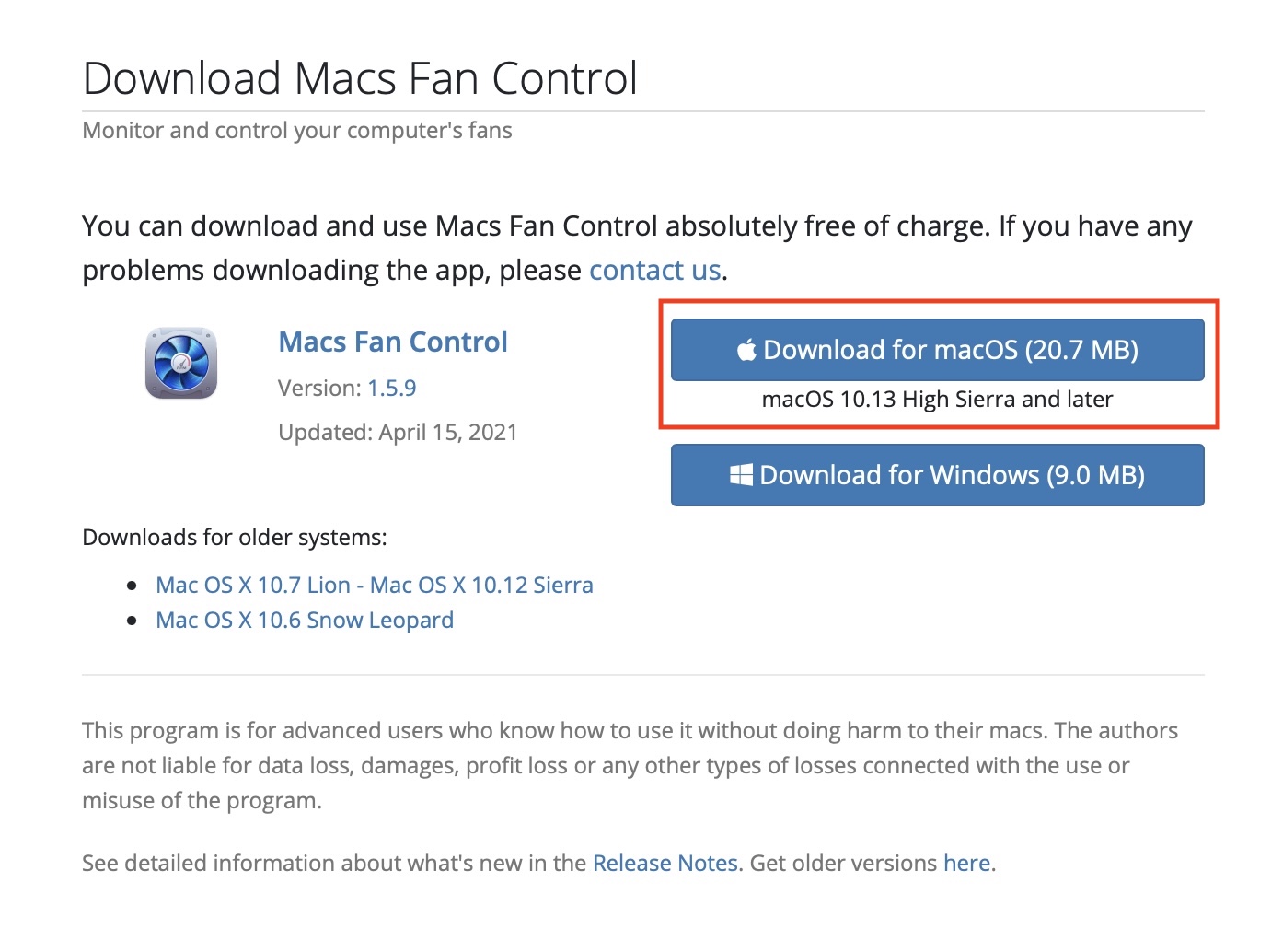 - Prvně je nutné, abyste si z těchto webových stránek stáhli aplikaci Macs Fan Control.