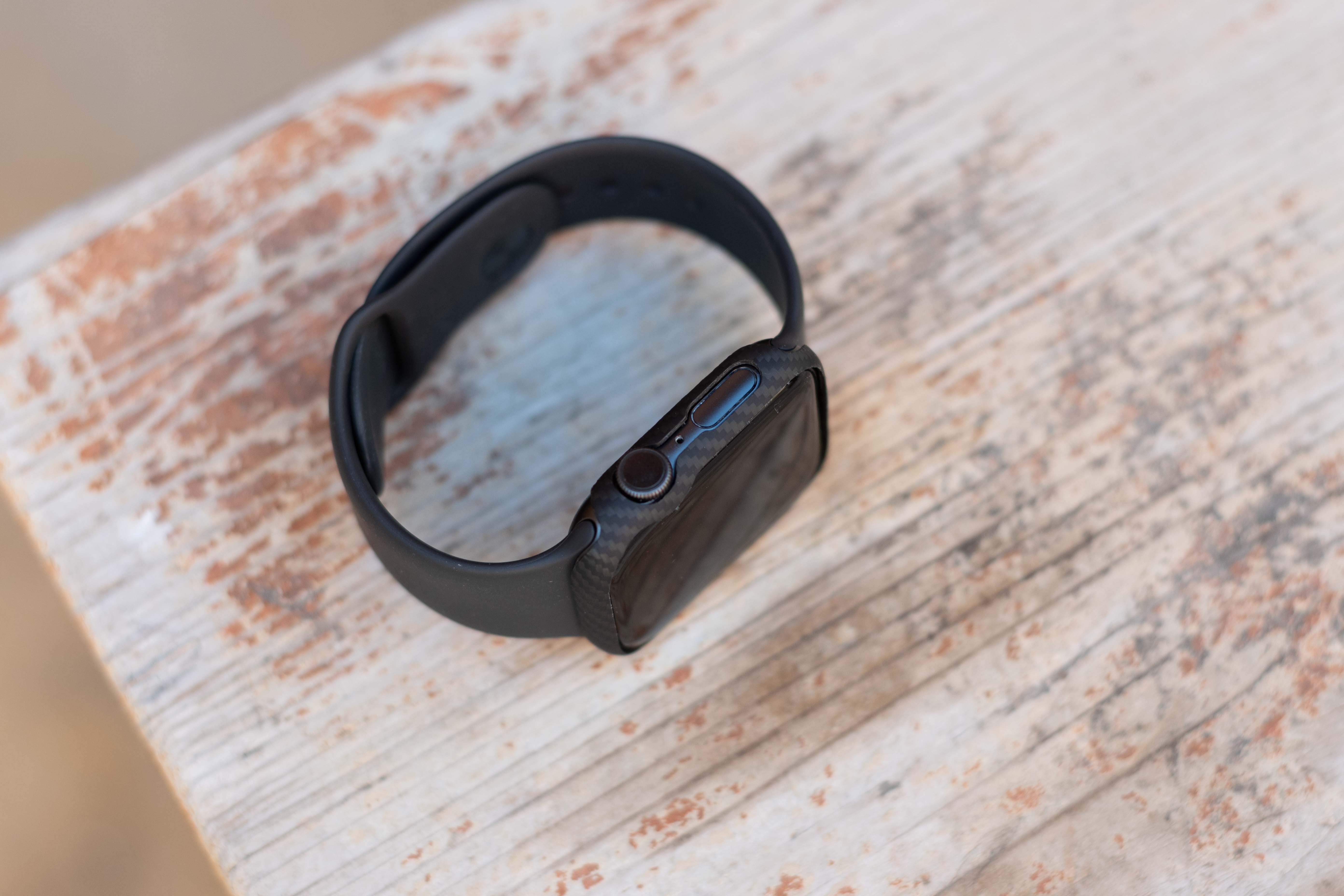 Air Case od Pitaky je vyroben z vysoce odolných aramidových vláken, které by měly být flexibilnější a tvrdší alternativou k uhlíkovým vláknům. Díky těmto vlastnostem se tak může kryt pyšnit velmi vysokou odolností proti škrábancům, prasknutí, ale třeba i proti ohni (což ale asi testovat nikdo z nás moc nechce). Tyto vlastnosti přitom nabízí při doslova extrémně nízké hmotnosti a minimální tloušťce. Pravdou totiž je, že samotný kryt v ruce skoro necítíte a po nasazení k hodinkám přilne natolik dobře, že si jej skoro ani nevšimnete. Právě tato jeho vlastnost je dle mého zároveň jeho nejsilnější stránkou, jelikož je zkrátka super, že vám takřka neviditelný kabátek odolnost vašich hodinek strmě zvýší. A když říkám strmě, myslím tím opravdu strmě – kryt totiž kryje naprosto dokonale kompletně kovové boky hodinek a končí jen těsně nad kůži na vašem zápěstí. Počítejte nicméně s tím, že ochranu displeje od něj očekávat nemůžete a co víc – zřejmě si jí při používání tohoto krytu ani ničím kvalitním nezajistíte. Air Case má u digitální korunky “výběžek” kopírující otvor právě pro digitální korunku, který mírně zasahuje do skleněného rámečku displeje. Právě tento výběžek by byl zřejmě při nalepení krycích skel problematický a skla odchlipoval, u slabších fólií by ale problém být neměl.