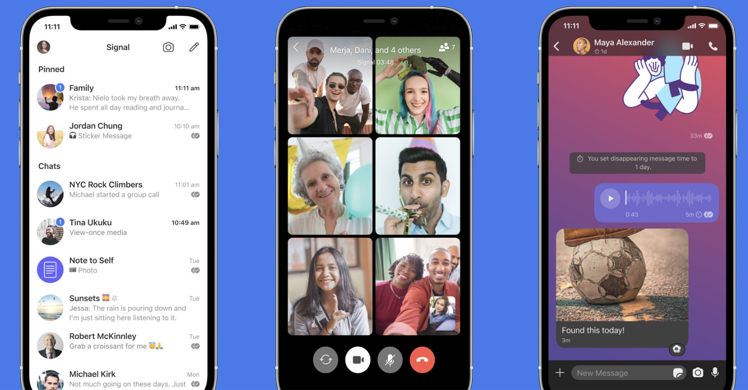 Pokud chcete komunikovat se světem bez obav ze sdílení dat a být co nejvíce anonymní, jasnou volbou je Signal. Zná jen telefonní číslo bez vazby na identitu. Neshromažďuje žádná data ani soubory, komunikace je zašifrovaná a obsah nepodléhá žádné kontrole. Druhou vhodnou volbou je síť Telegram.