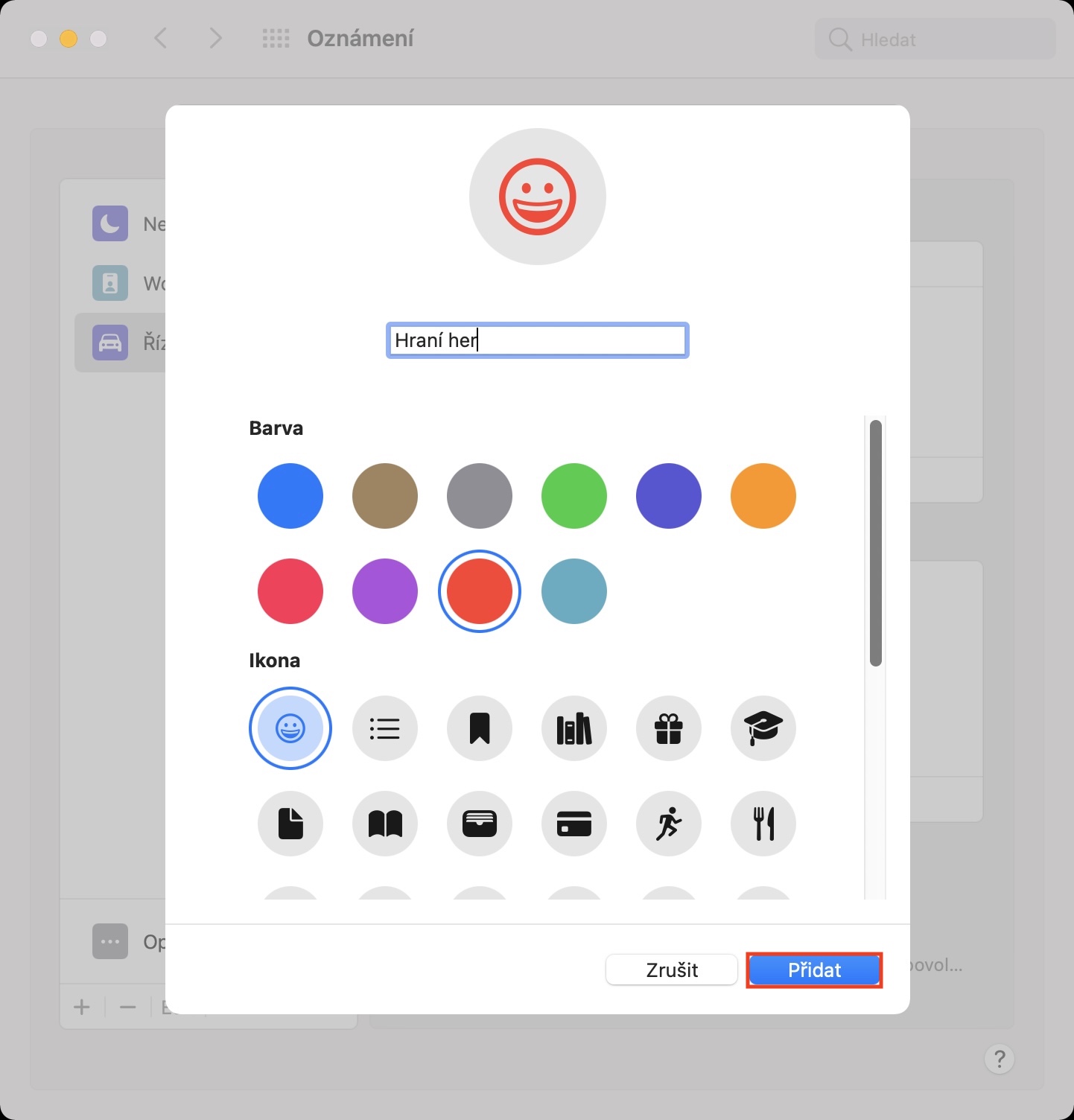 - V tomto rozhraní už si jen stačí zvolit název režimu, společně s ikonou a barvou.